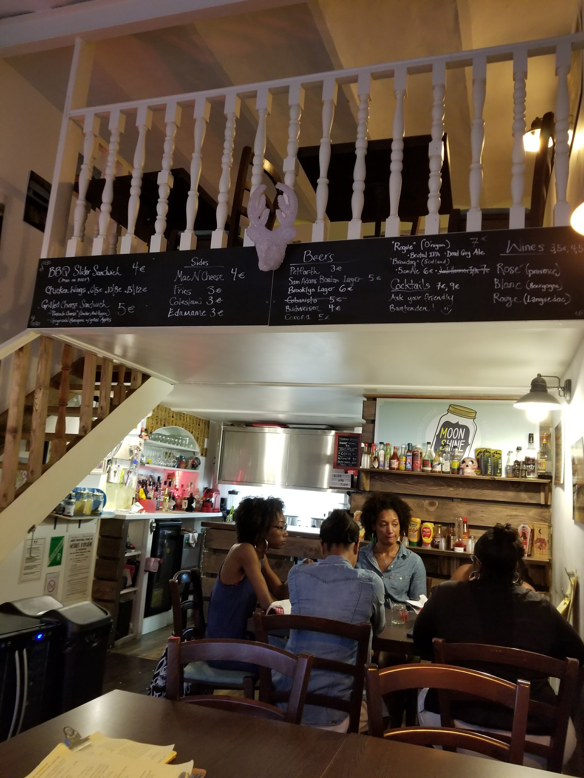 J’adore Moonshine. Des collations divines, une ambiance géniale, un excellent service et de bons prix.