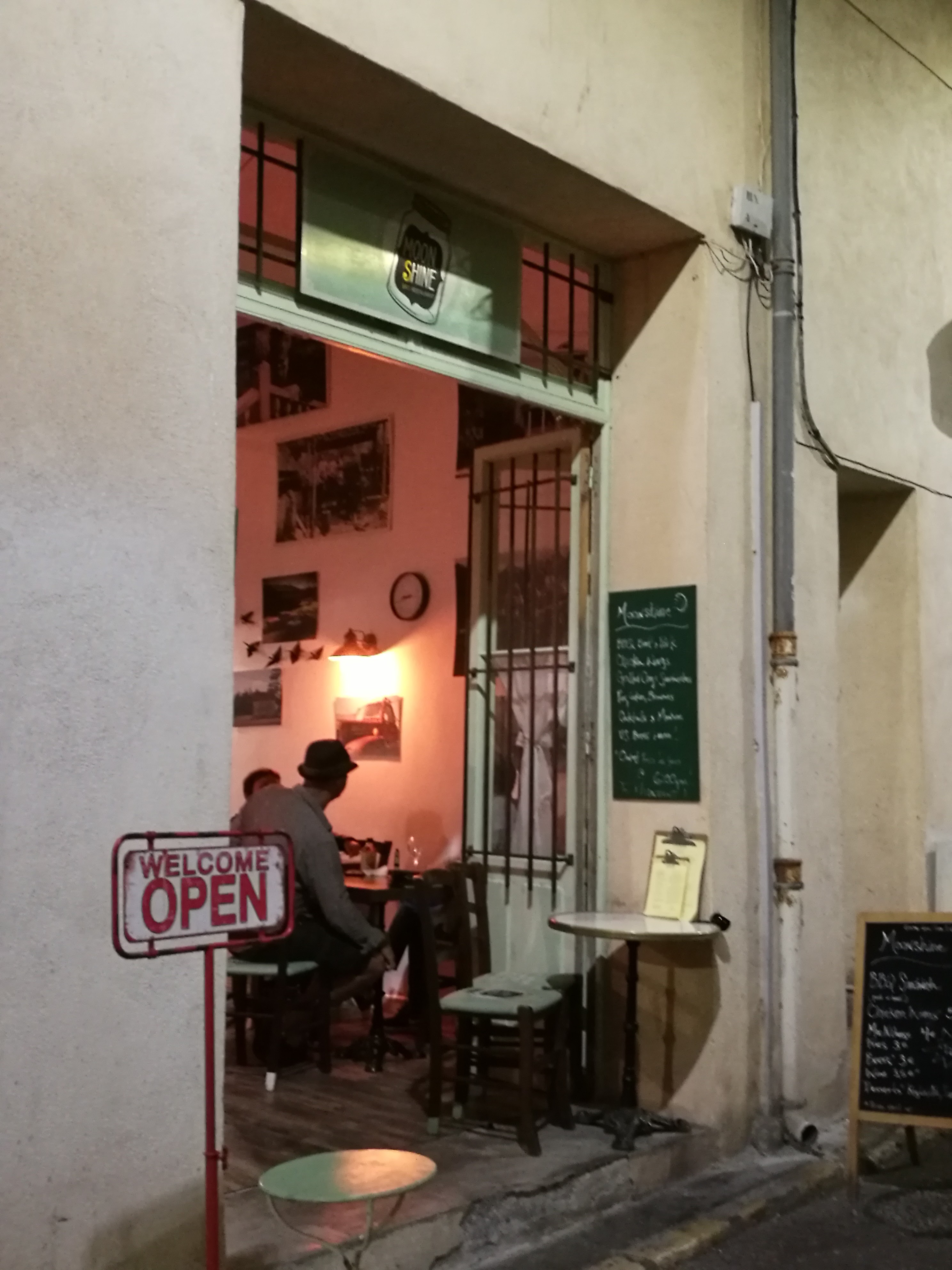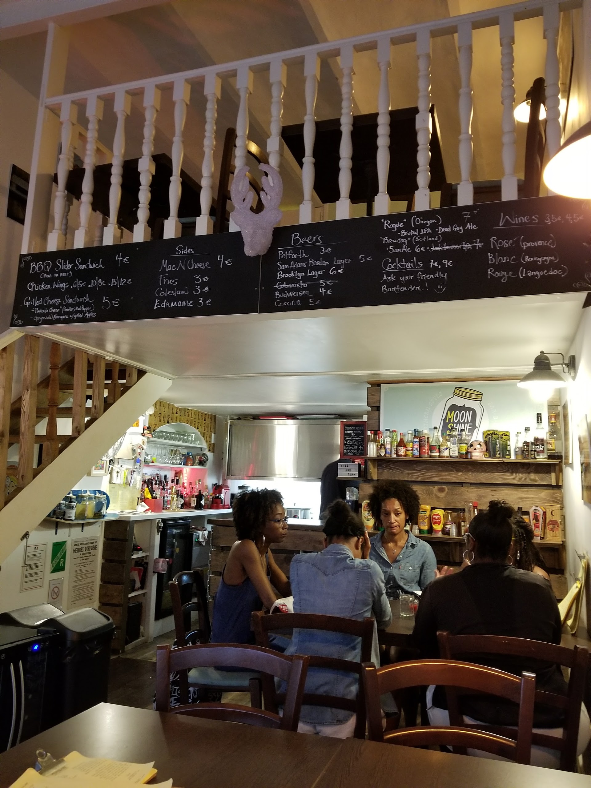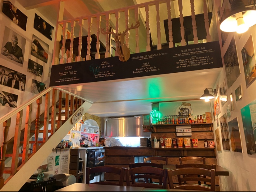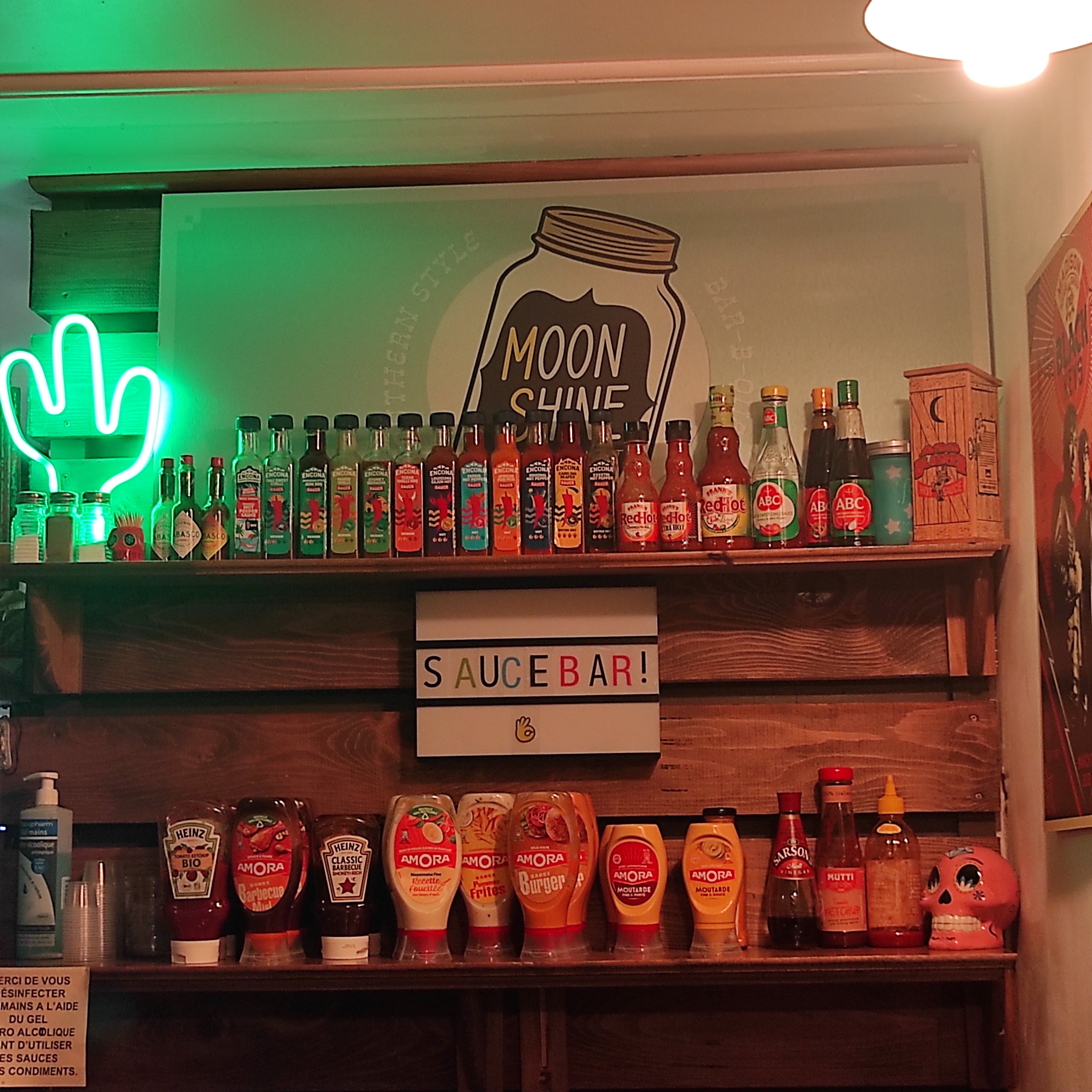 Merci au personnel de ce bar, les plats étaient délicieux, des cocktails très originaux. Après quelques verres on a l’impression d’être aux states dans un petit bar local…. (Je conseille de goûter le shot piment ;)) Les rapport qualité / prix fait plaisir et le personnel est vraiment au top! C’est un endroit rempli de significations et d’idéologie ce qui est très inspirant. Si vous cherchez un endroit chaleureux avec de quoi bien manger et boire, ne passez pas à côté de Moonshine.