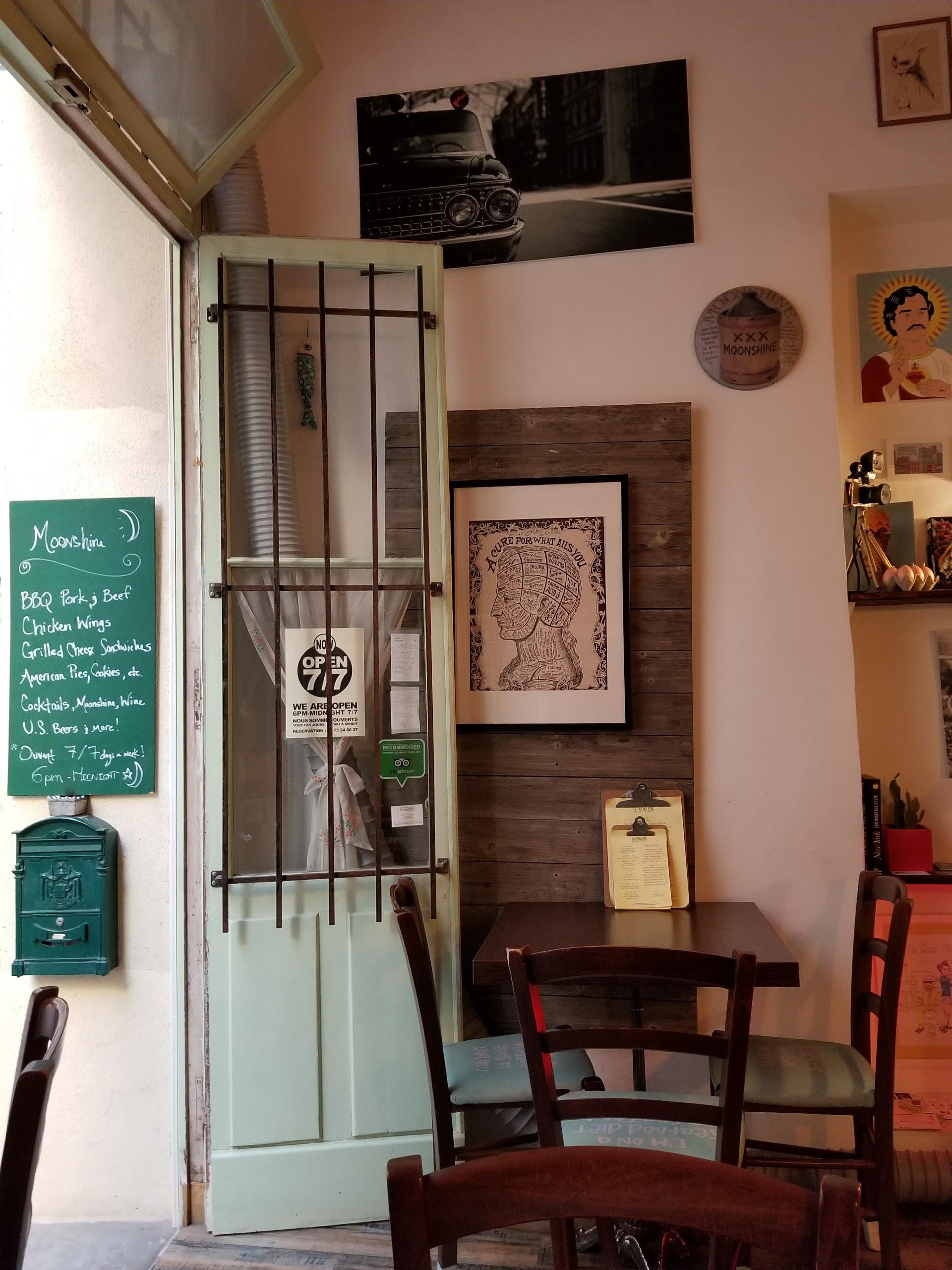 Petit lieu sur le thème grands classiques et mythes américains, accueillant et très original. Très bonne cuisine avec le souci du détail, ainsi que le service et la gentillesse du propriétaire. Le seul petit défaut est que le service est un peu lent, justifié par la forte affluence et le fait qu'il n'y ait que deux membres du personnel.