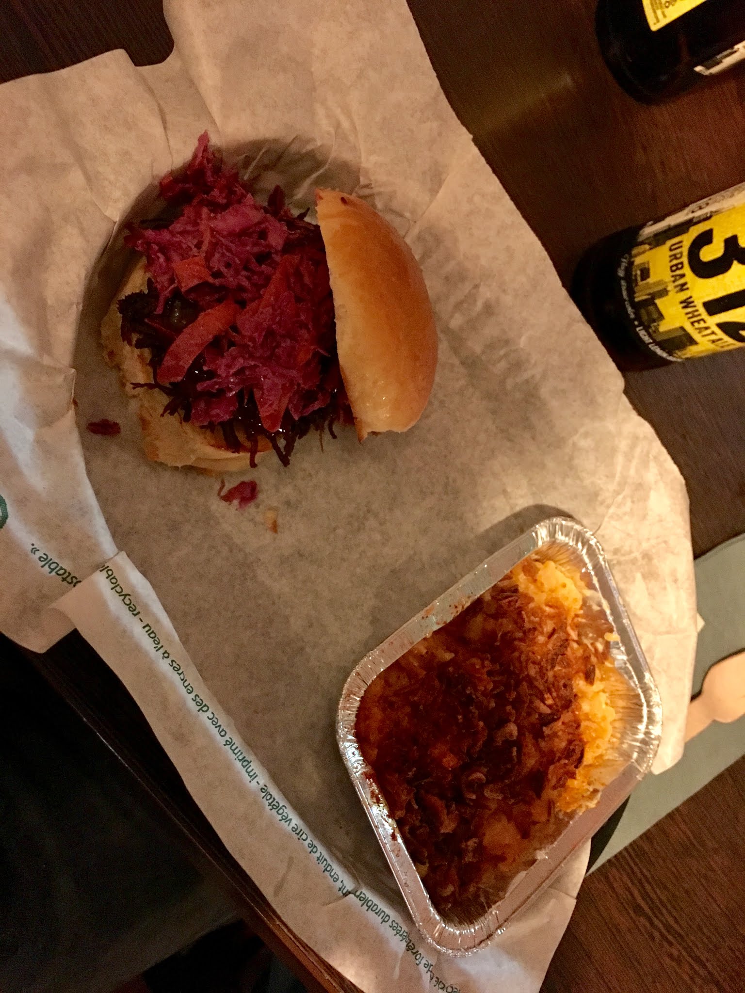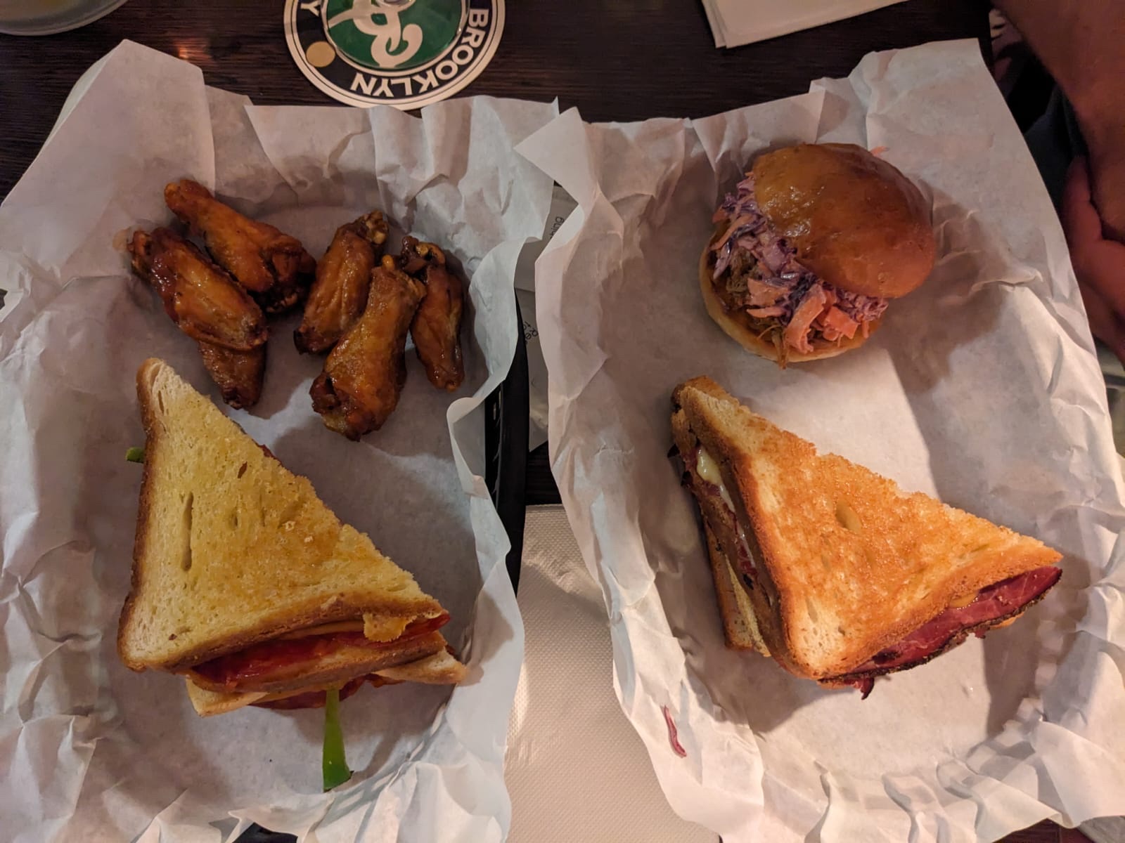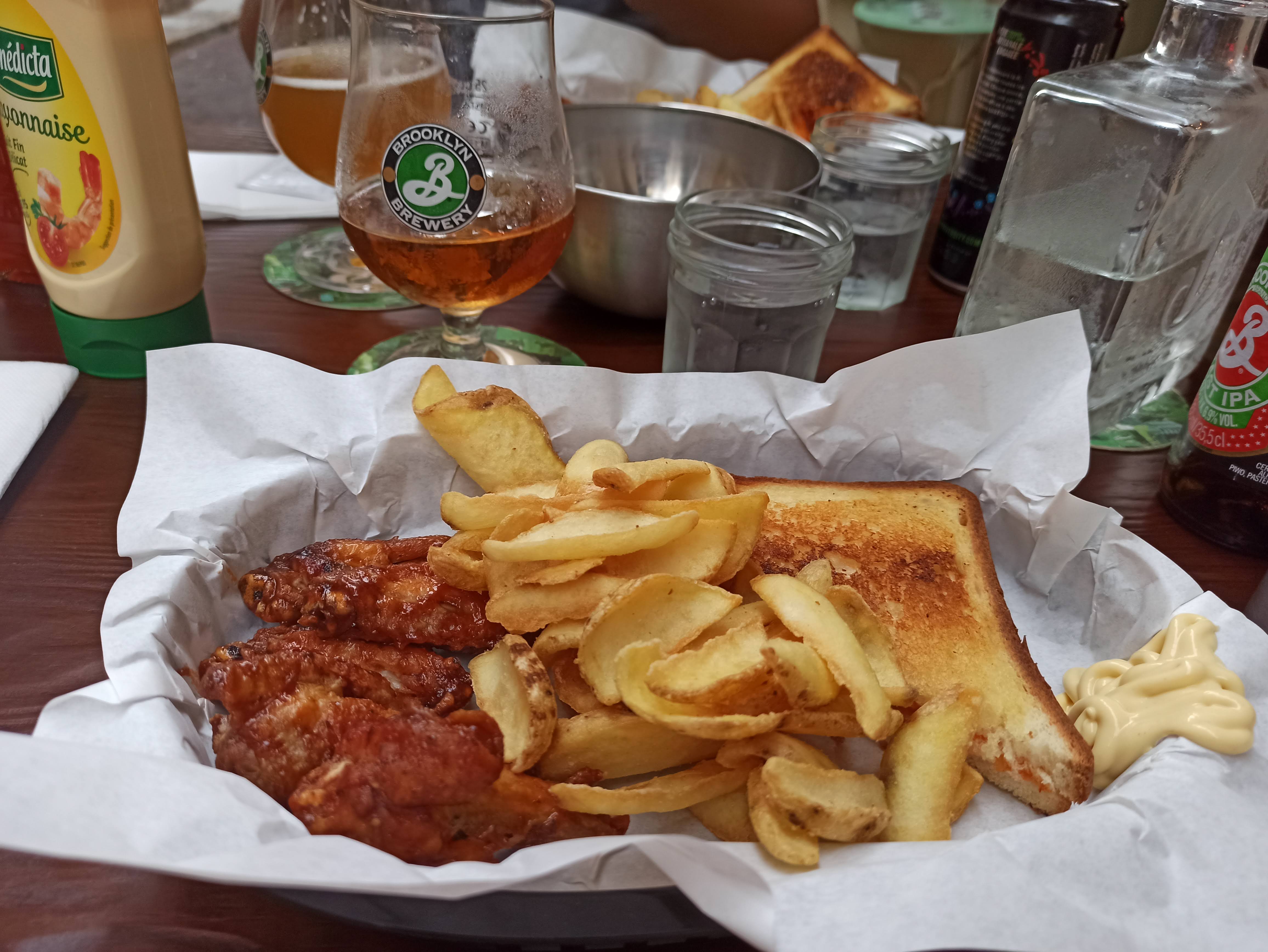Pour une jolie soirée au pays de la bière (mais possibilité vin), des chicken wings, des frites, du coleslaw et du pastrami. A noter un bar à sauces pimentées et surtout un accueil très très sympa.