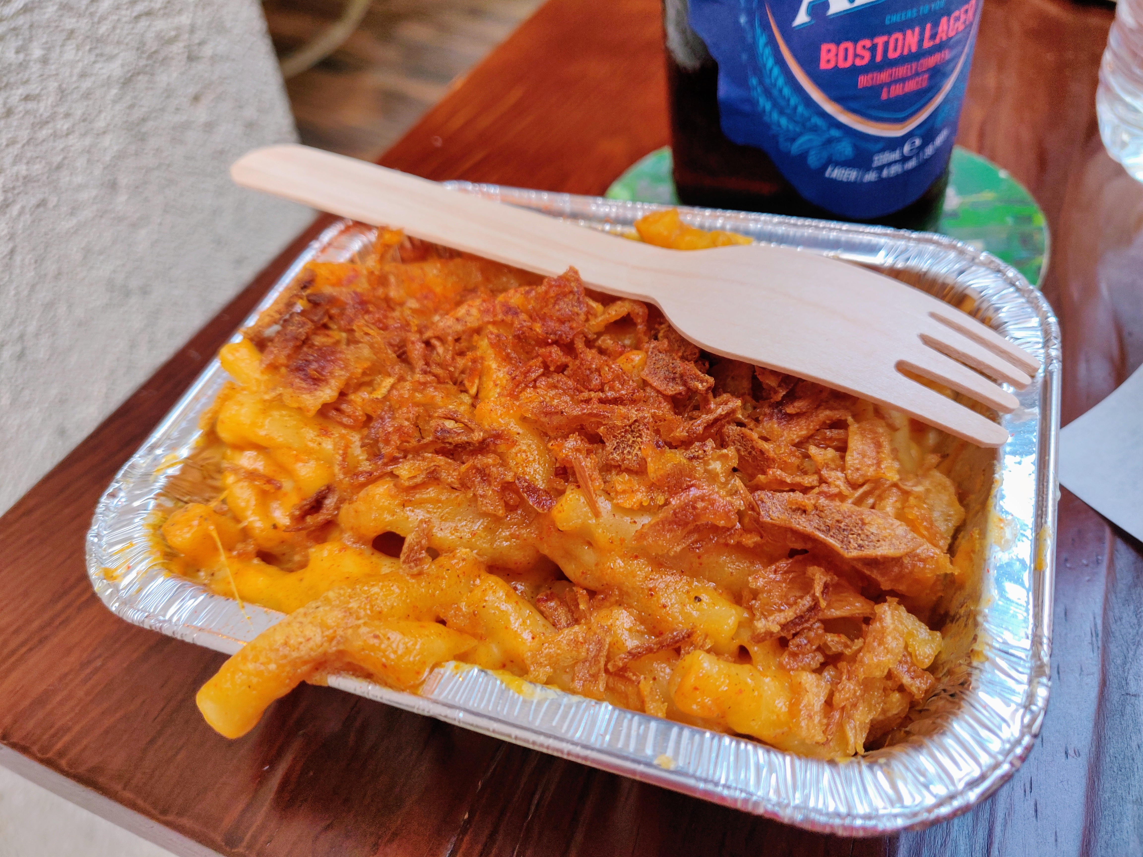 Mac & Cheese classique, ailes savoureuses et belle sélection de bières. N'essayez pas la sauce super piquante.
