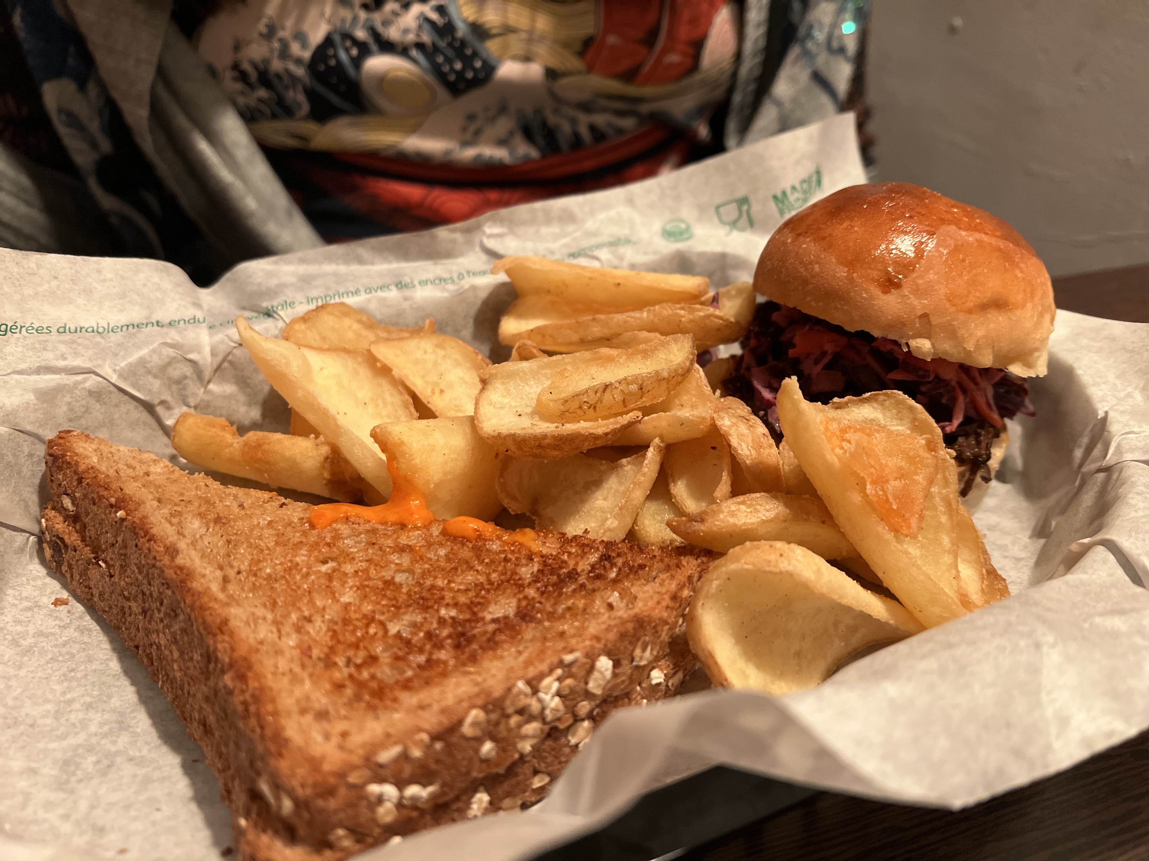 J'ai vraiment aimé l'ambiance, super chill et les toilettes étaient vraiment mignonnes et propres. Les sliders étaient savoureux, j'aurais aimé que le porc effiloché soit légèrement moins sec mais dans l'ensemble vraiment bon. Le sandwich au fromage grillé avec salsa était au rendez-vous et les frites sont à 10/10. Les prix étaient justes et le service excellent.