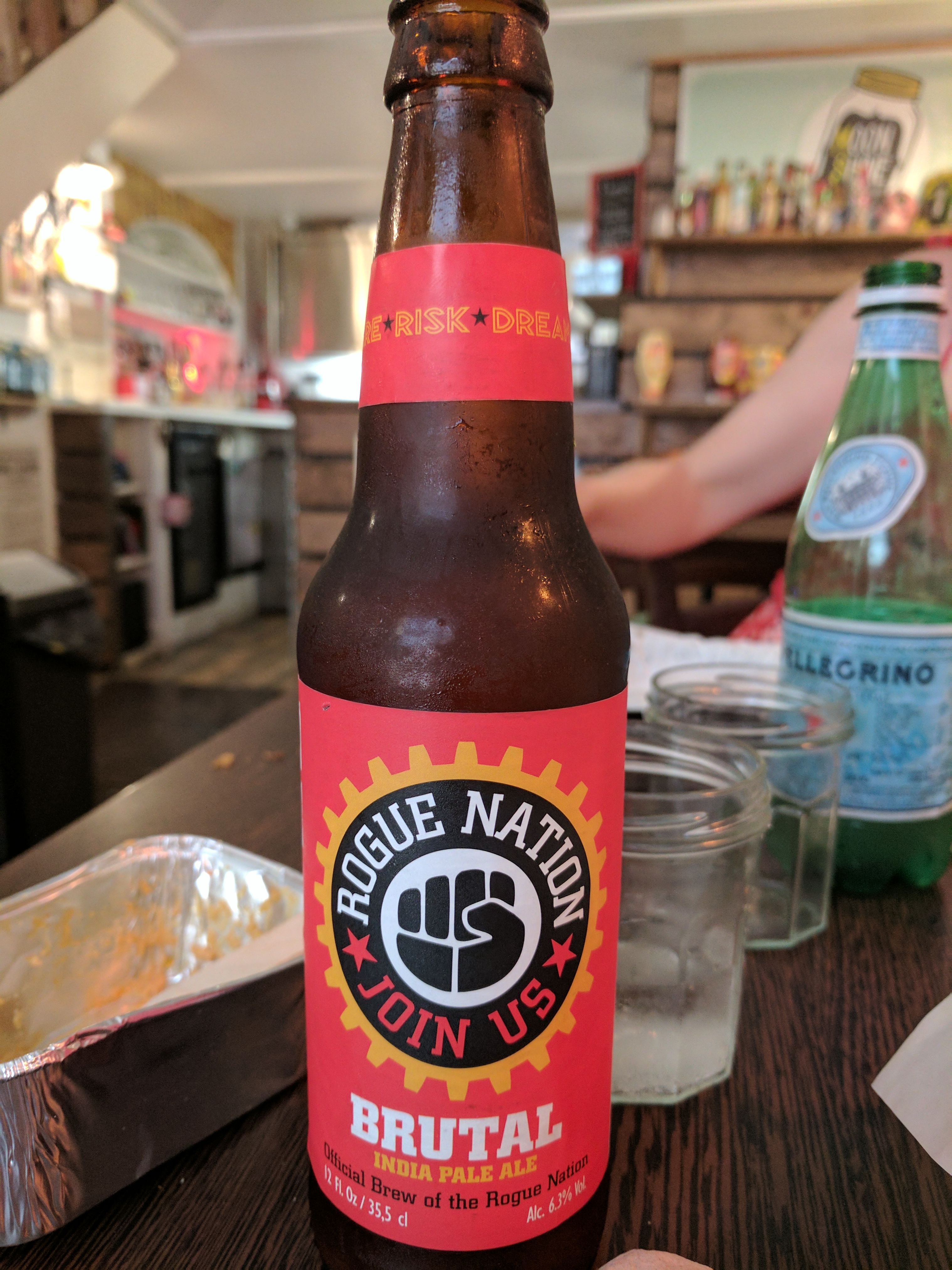 Grand barbecue du sud dans les endroits les plus inattendus. Le chef/propriétaire était super sympa et la nourriture était excellente. La dernière chose que je m'attendais à boire sur la côte française était la Brutal IPA de Rogue. Un avant-goût de la maison.
