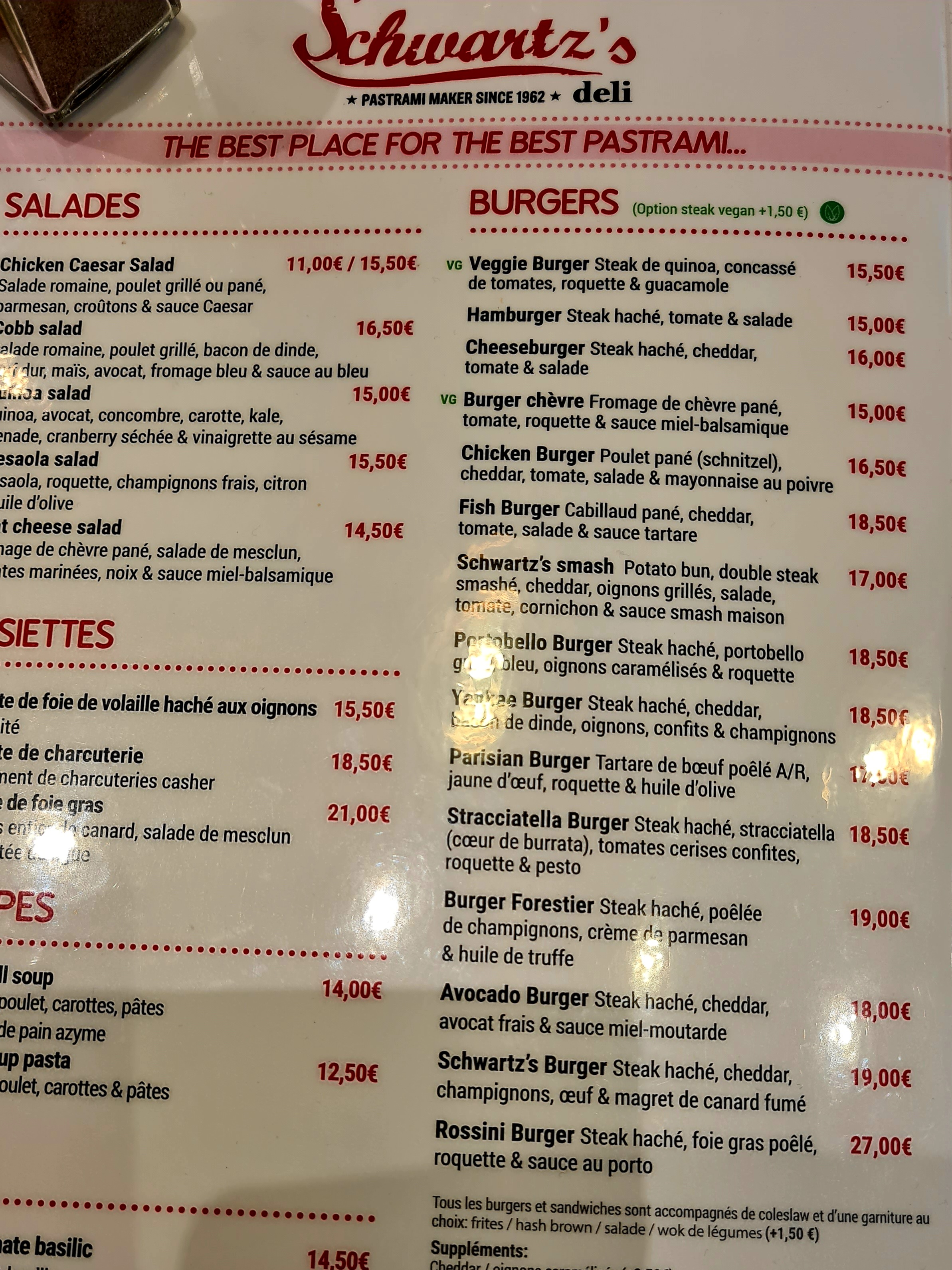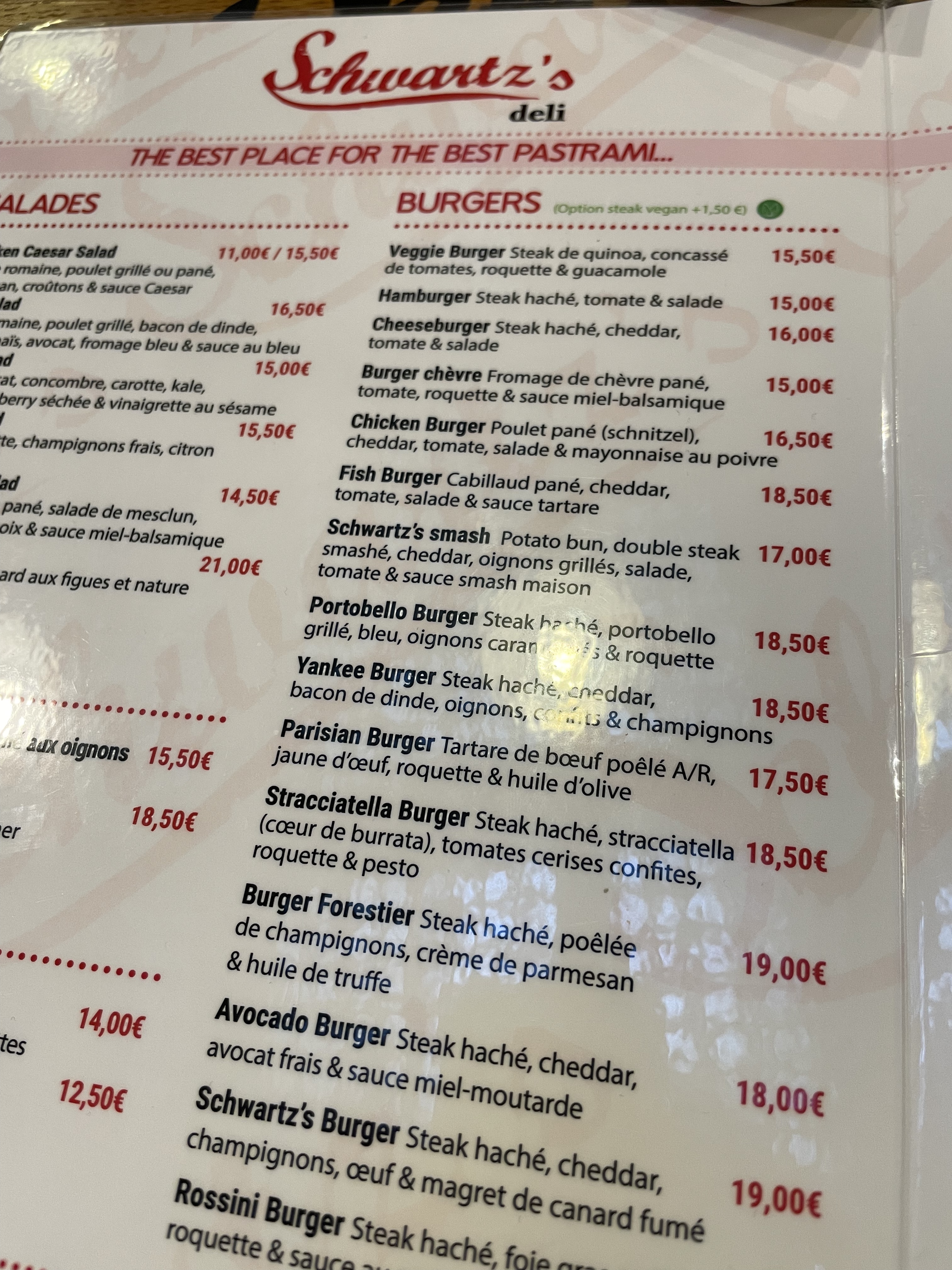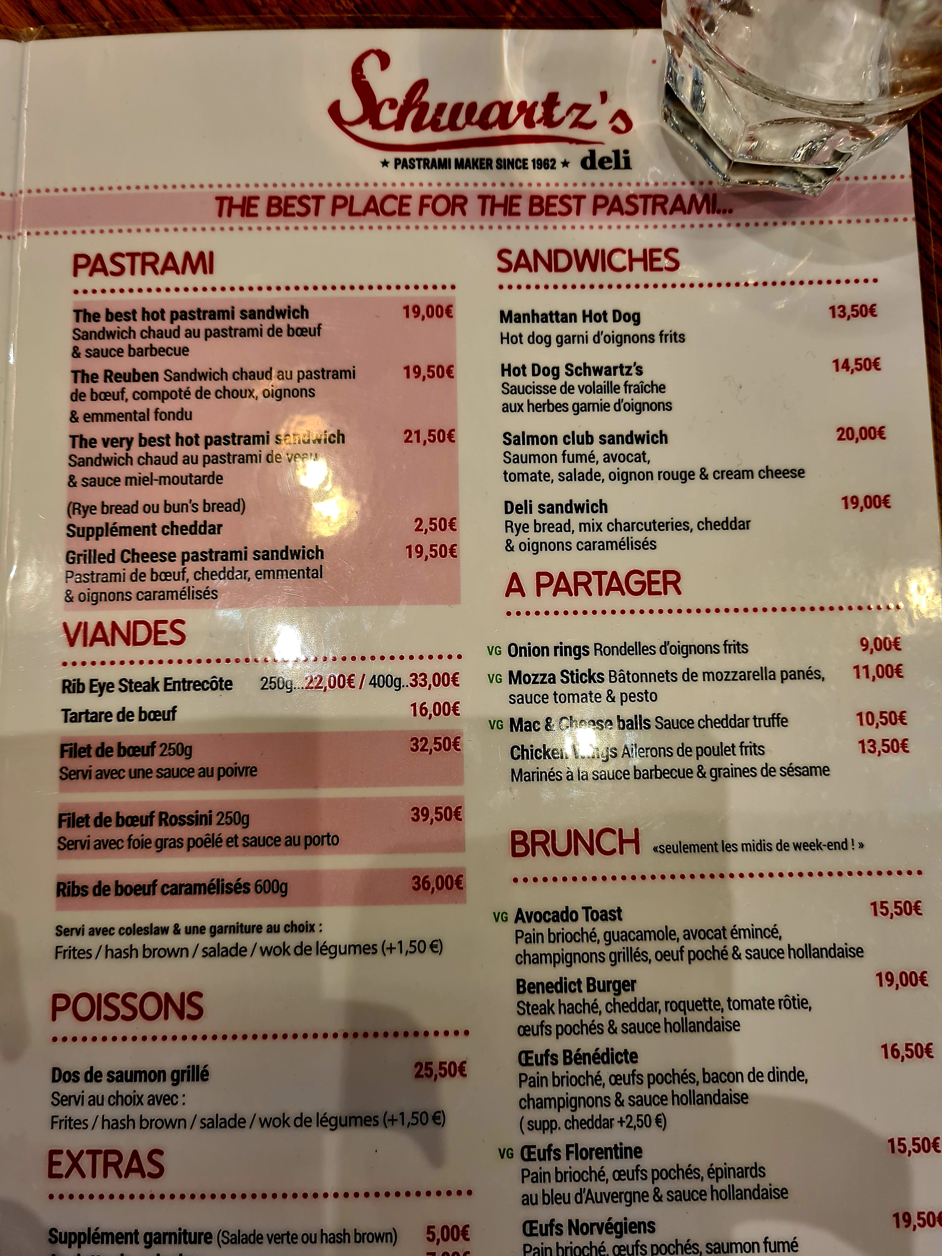 Testé aujourd’hui,pastrami au colorant rose,aucun goût ni assaisonnement qui ont fait la renommée du vrai Schwartz de Montréal. Les oignons confits sont bons. Rien de mémorable. 13,90€ un sandwich sans frites ni boisson… Il fallait que je teste,c’est fait