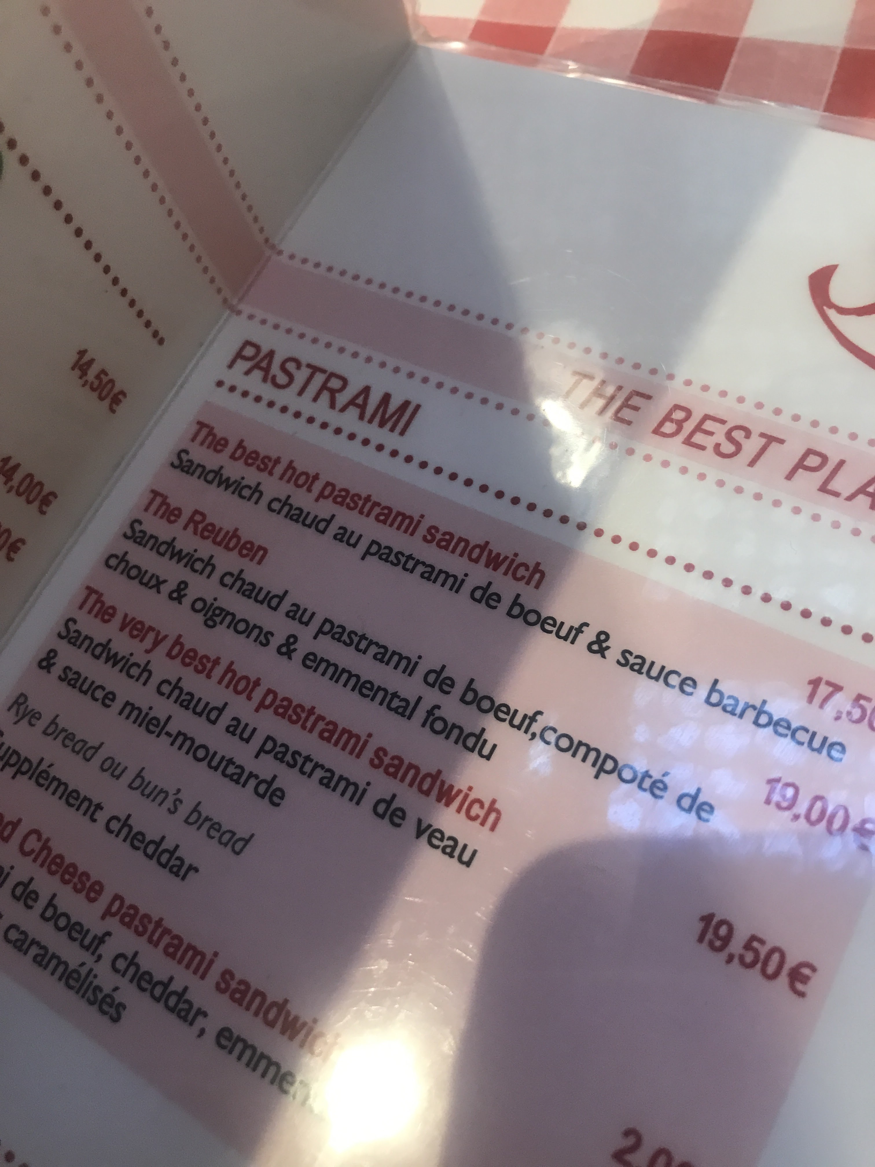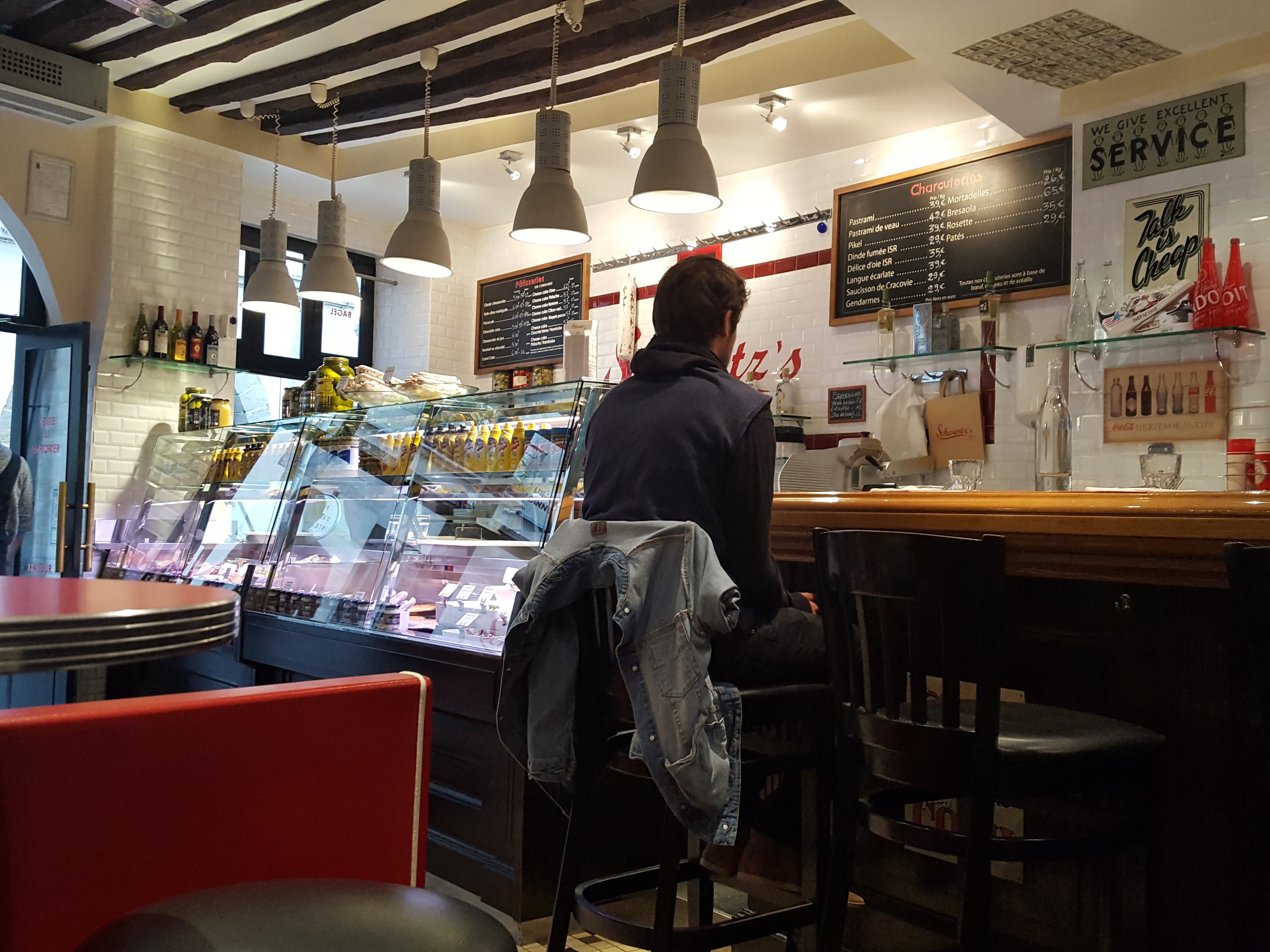 Je vais régulièrement dans ce restaurant parisien pour le plaisir d'y manger un sandwich au pastrami comme ceux de chez Katz à NYC. Ils ne sont pas 100 pour cent 100 mais on s'en rapproche vachement et on en redemande. Seul bémol mais qui n'a rien à voir avec la cuisine ... Les tables sont petites de même que les espaces autour de vous donc c'est difficile d'avoir un espace pour un sac de shopping, un sac à main ou une veste. Autant le savoir pour y aller les mains vides et apprécier le moment sans contrainte. Et sinon, le personnel est très sympathique.