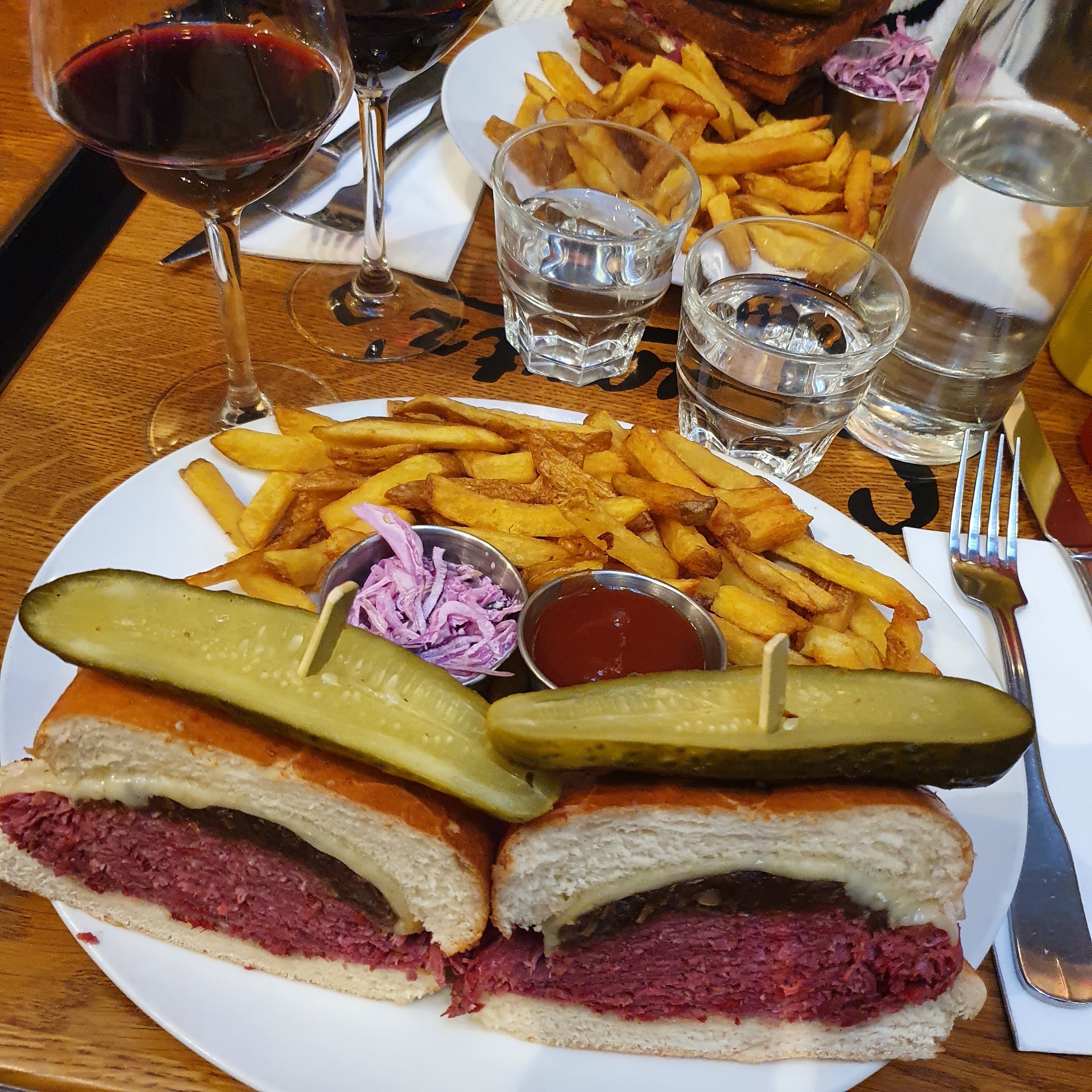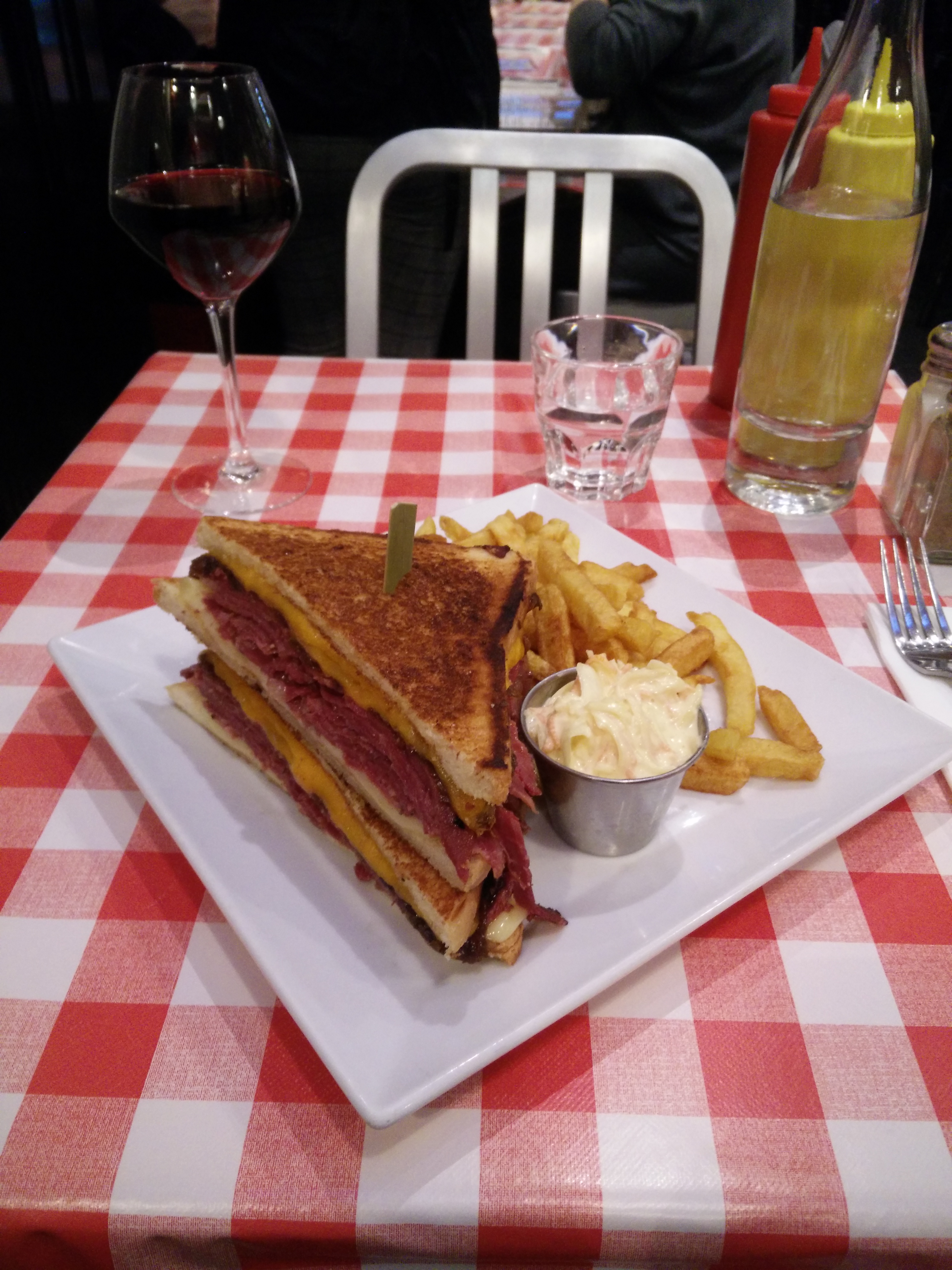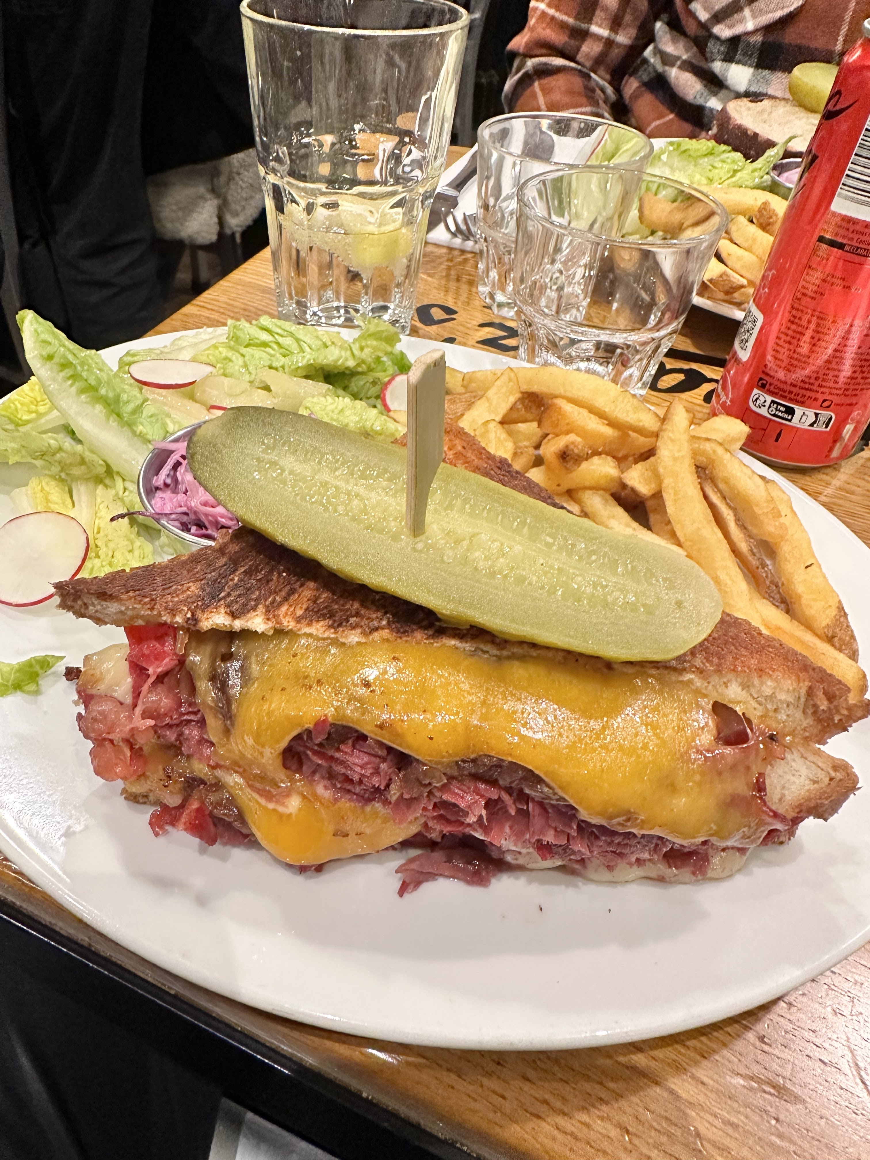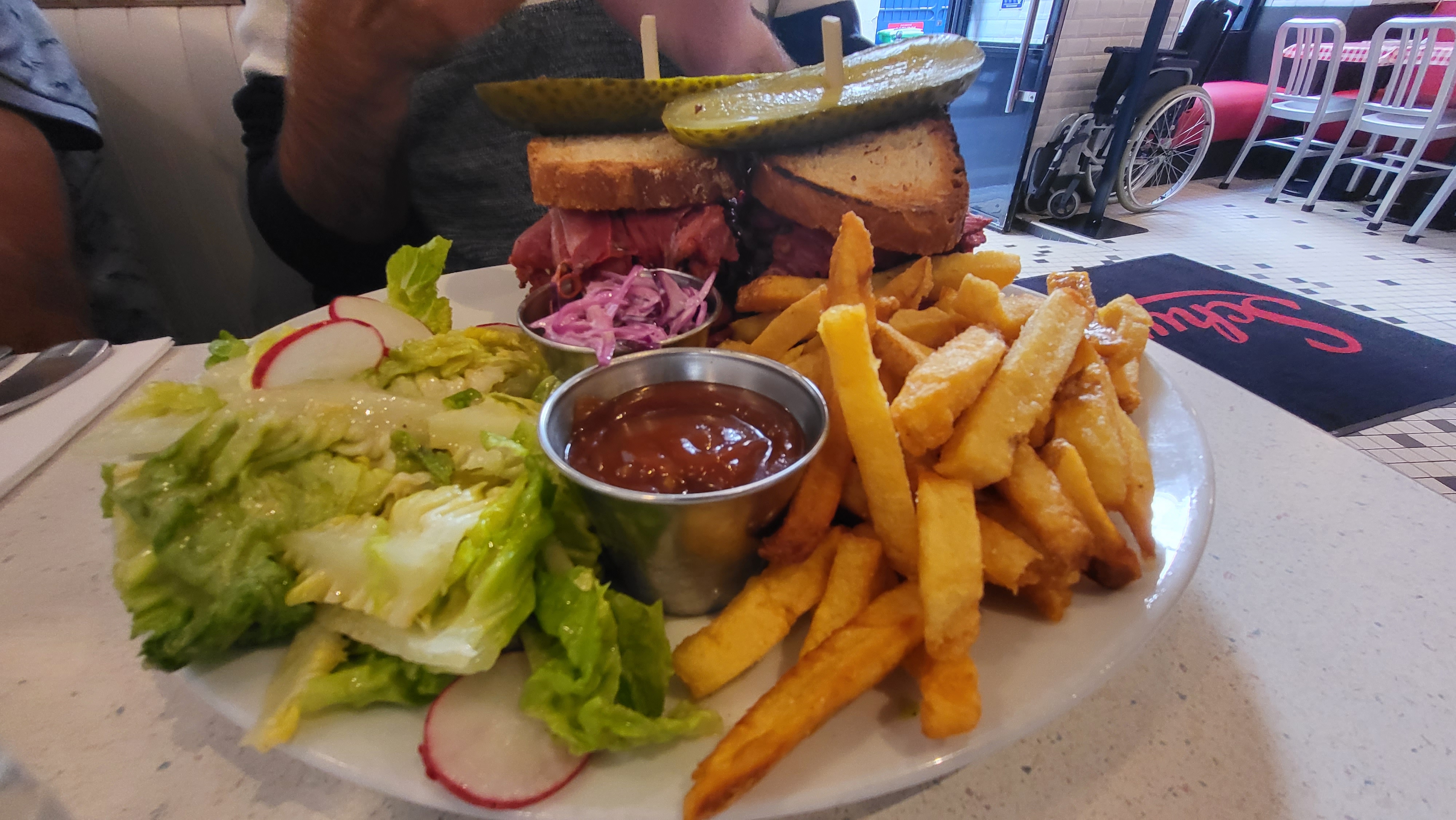 Pastrami sandwich excellent mais un peu trop sec. Les frites sont pas très bonnes pour du fait maison. Les quantités sont quand mêmes monstrueuse, j'ai été incapable de prendre un dessert. Service très agréable et efficace.
