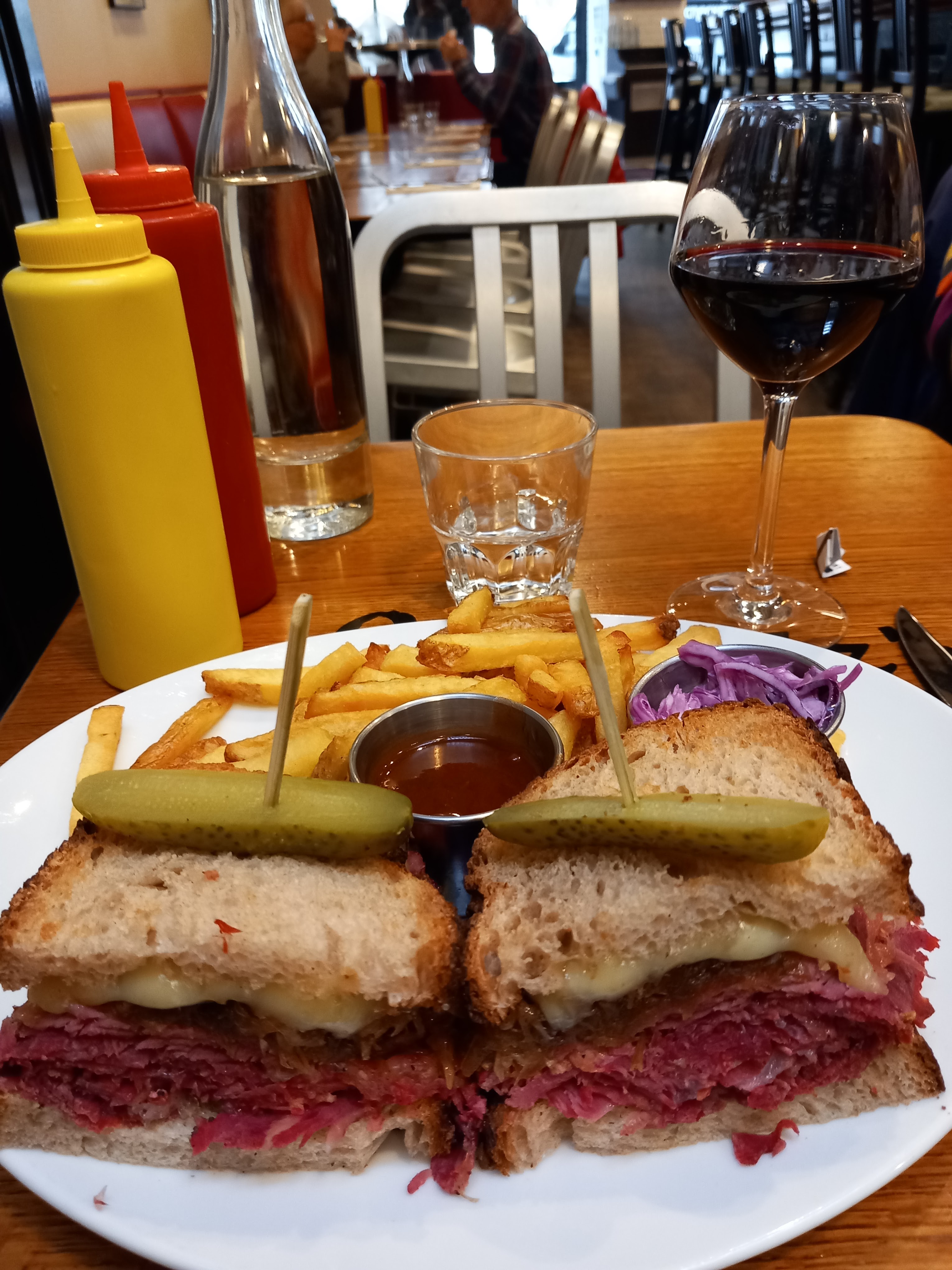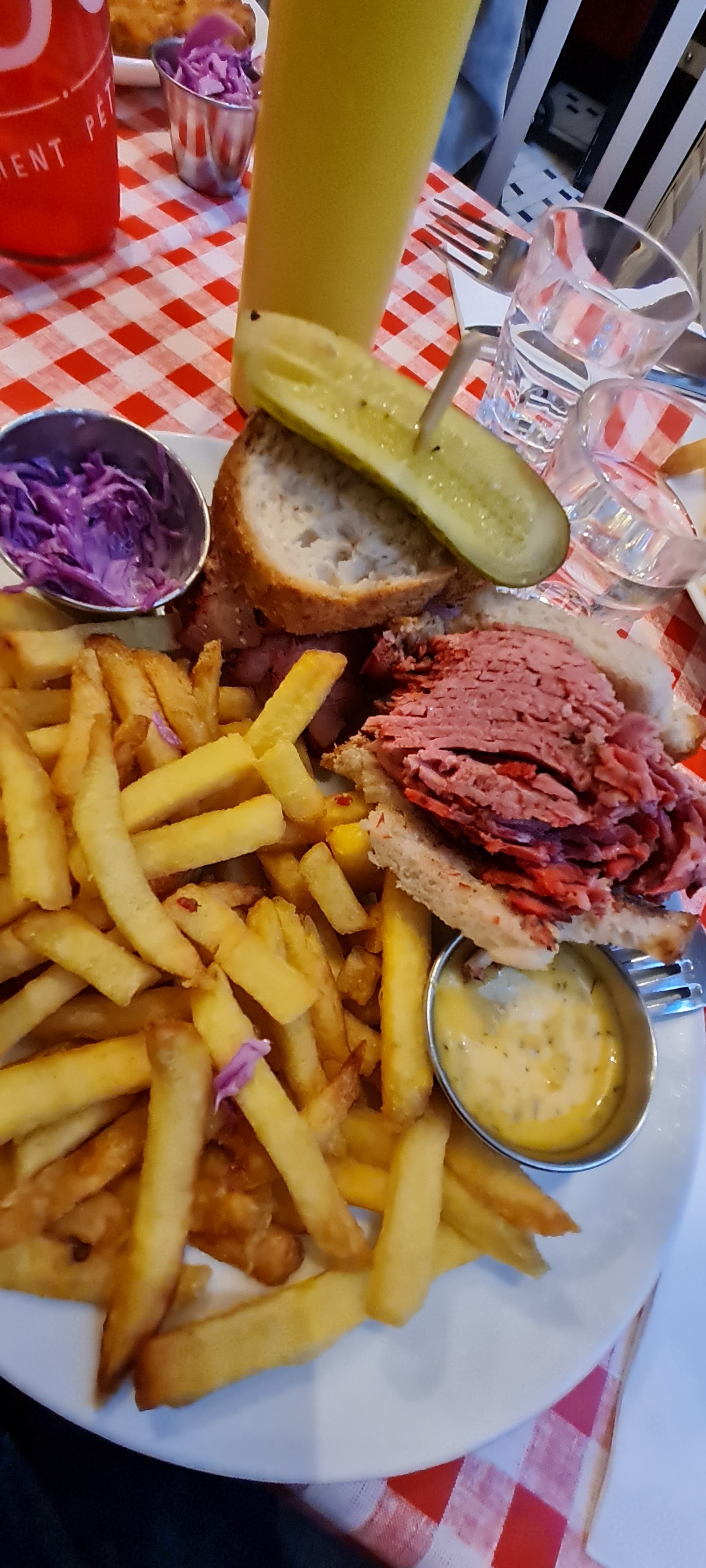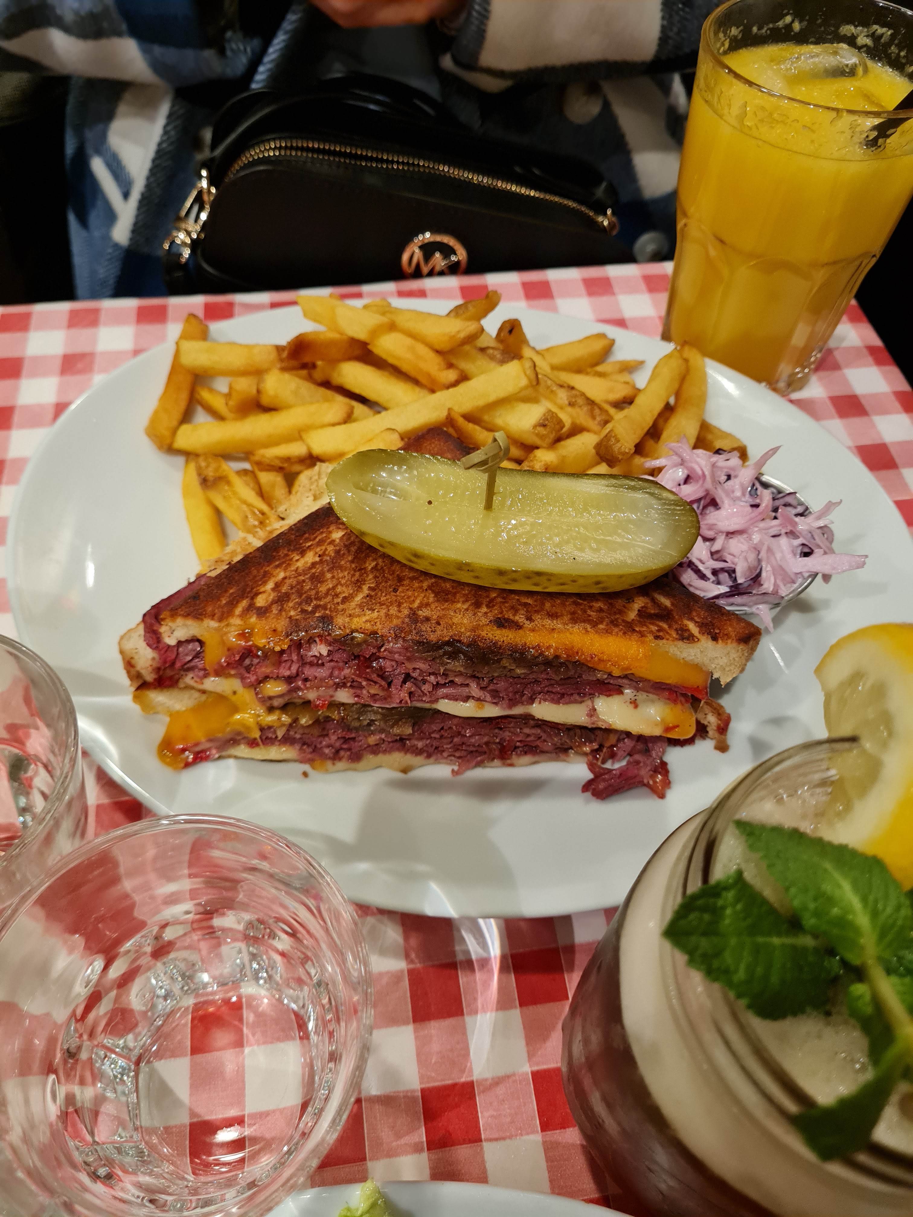 Pastrami sandwich excellent mais un peu trop sec. Les frites sont pas très bonnes pour du fait maison. Les quantités sont quand mêmes monstrueuse, j'ai été incapable de prendre un dessert. Service très agréable et efficace.