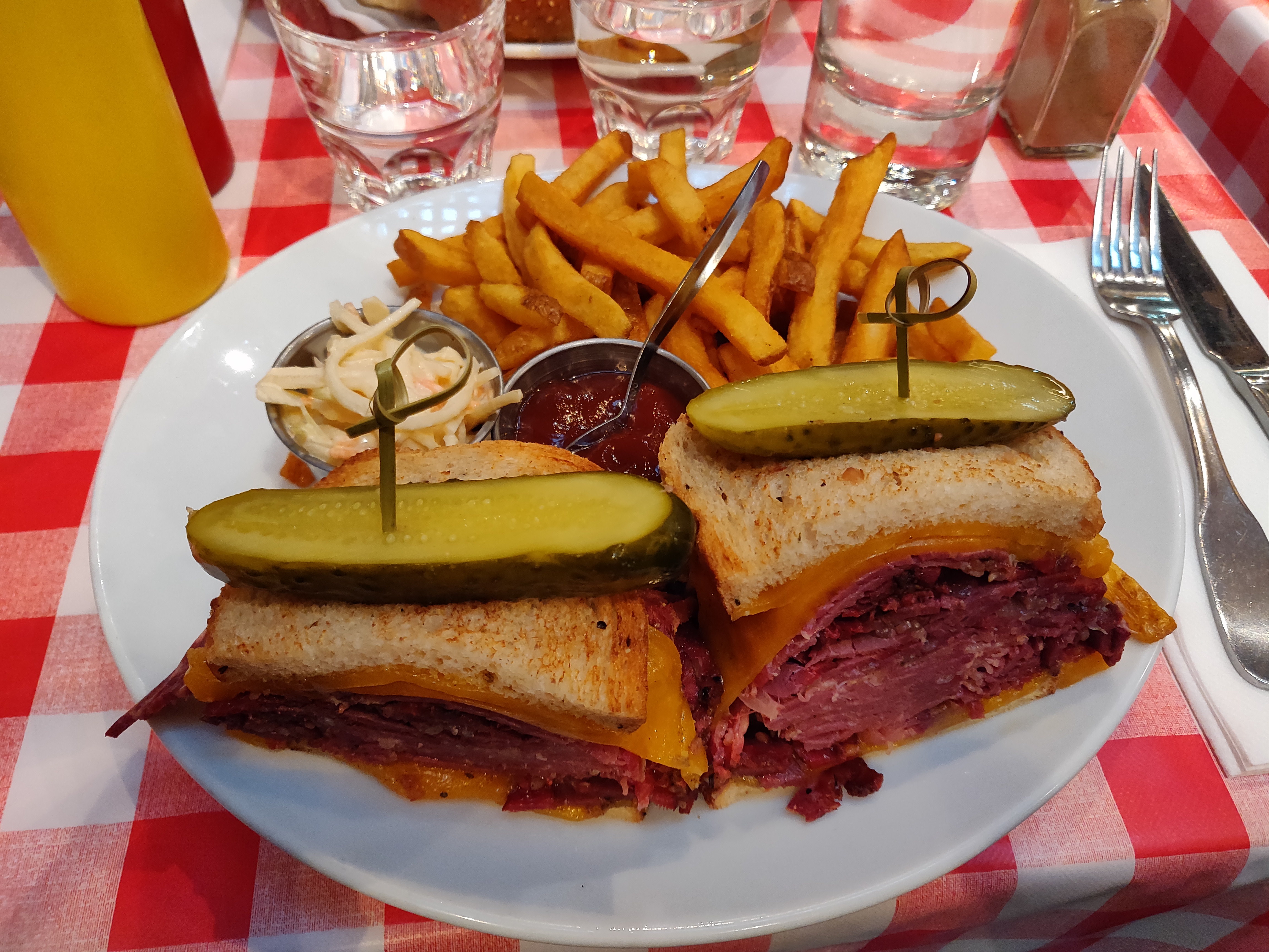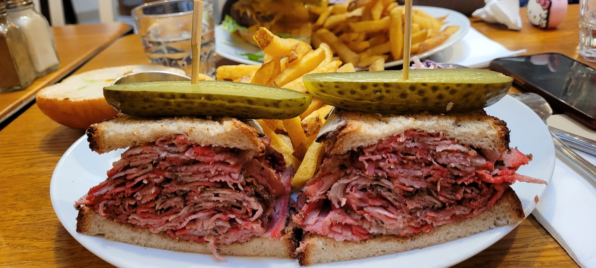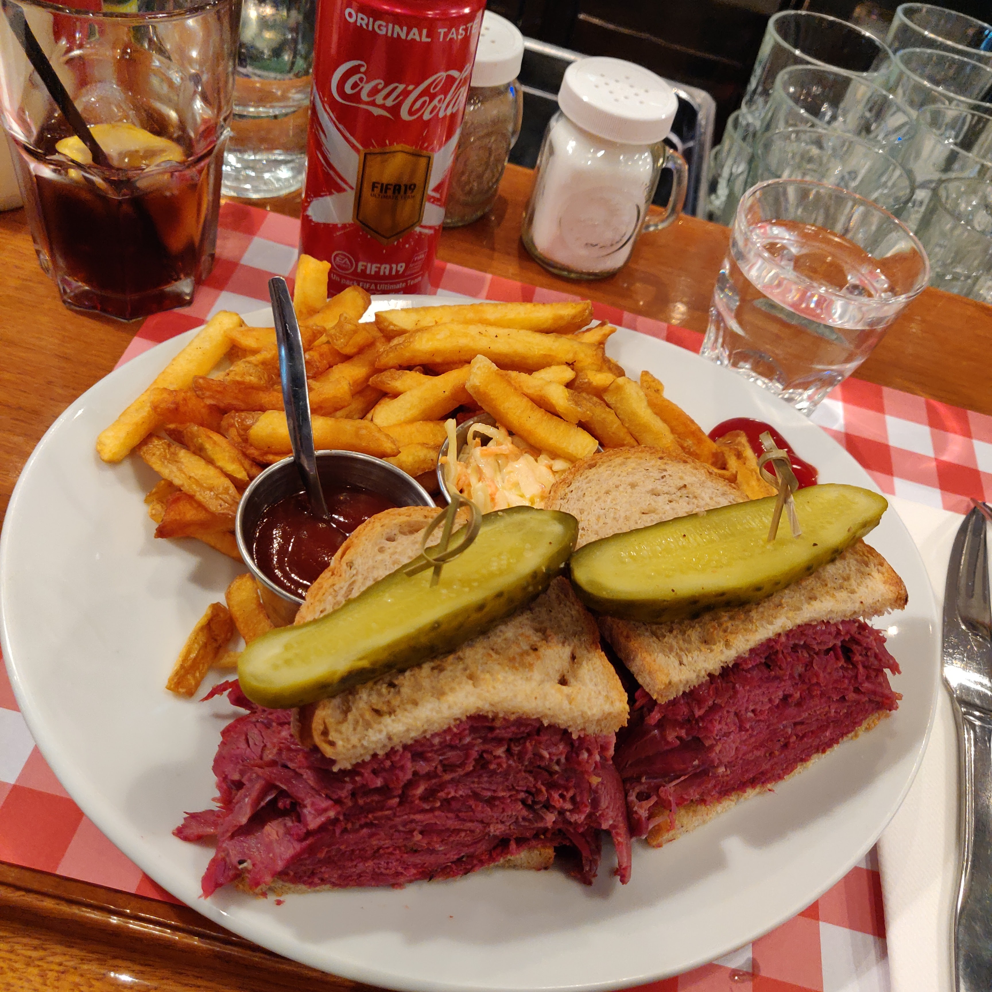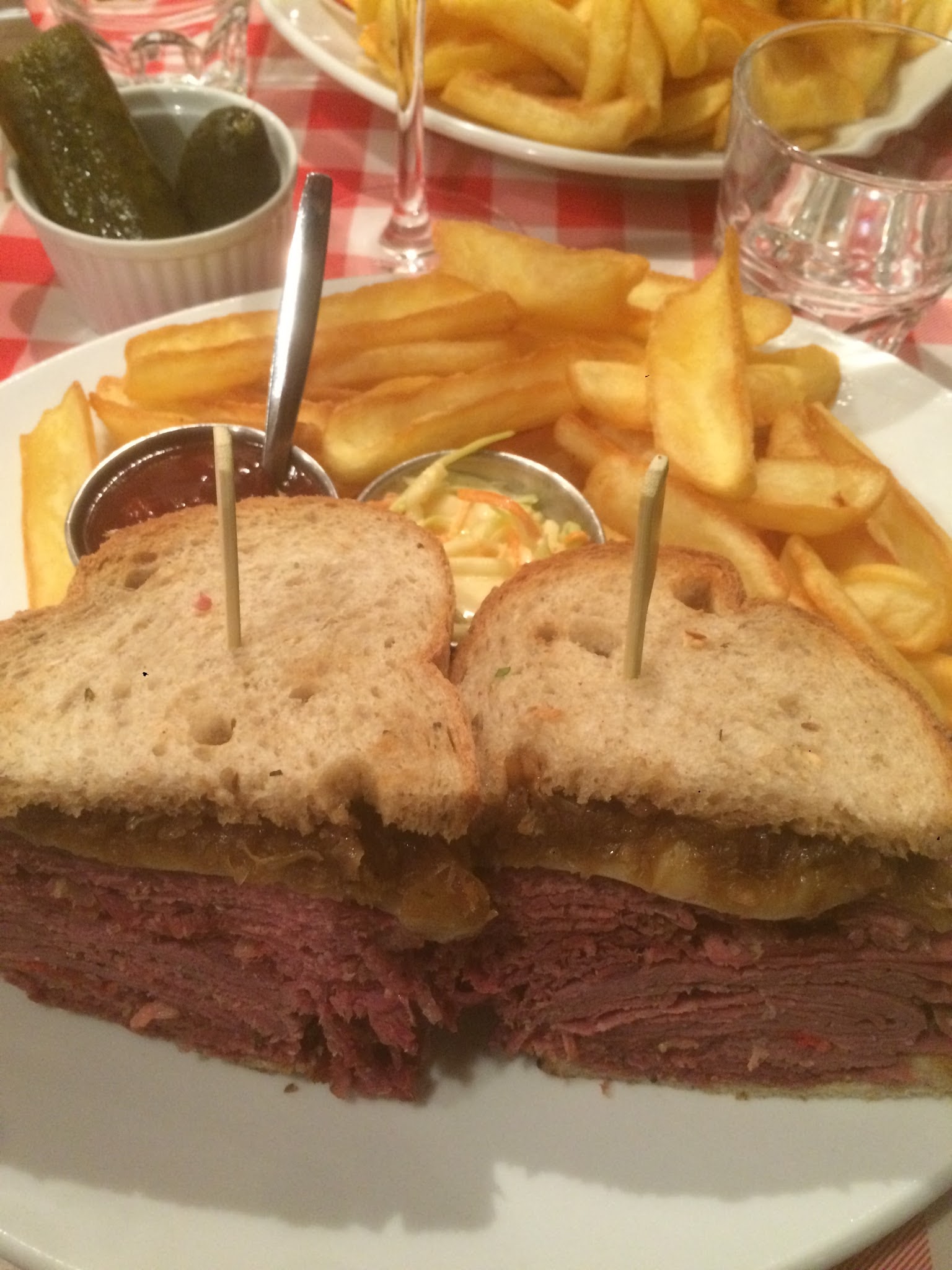 Pastrami sandwich excellent mais un peu trop sec. Les frites sont pas très bonnes pour du fait maison. Les quantités sont quand mêmes monstrueuse, j'ai été incapable de prendre un dessert. Service très agréable et efficace.
