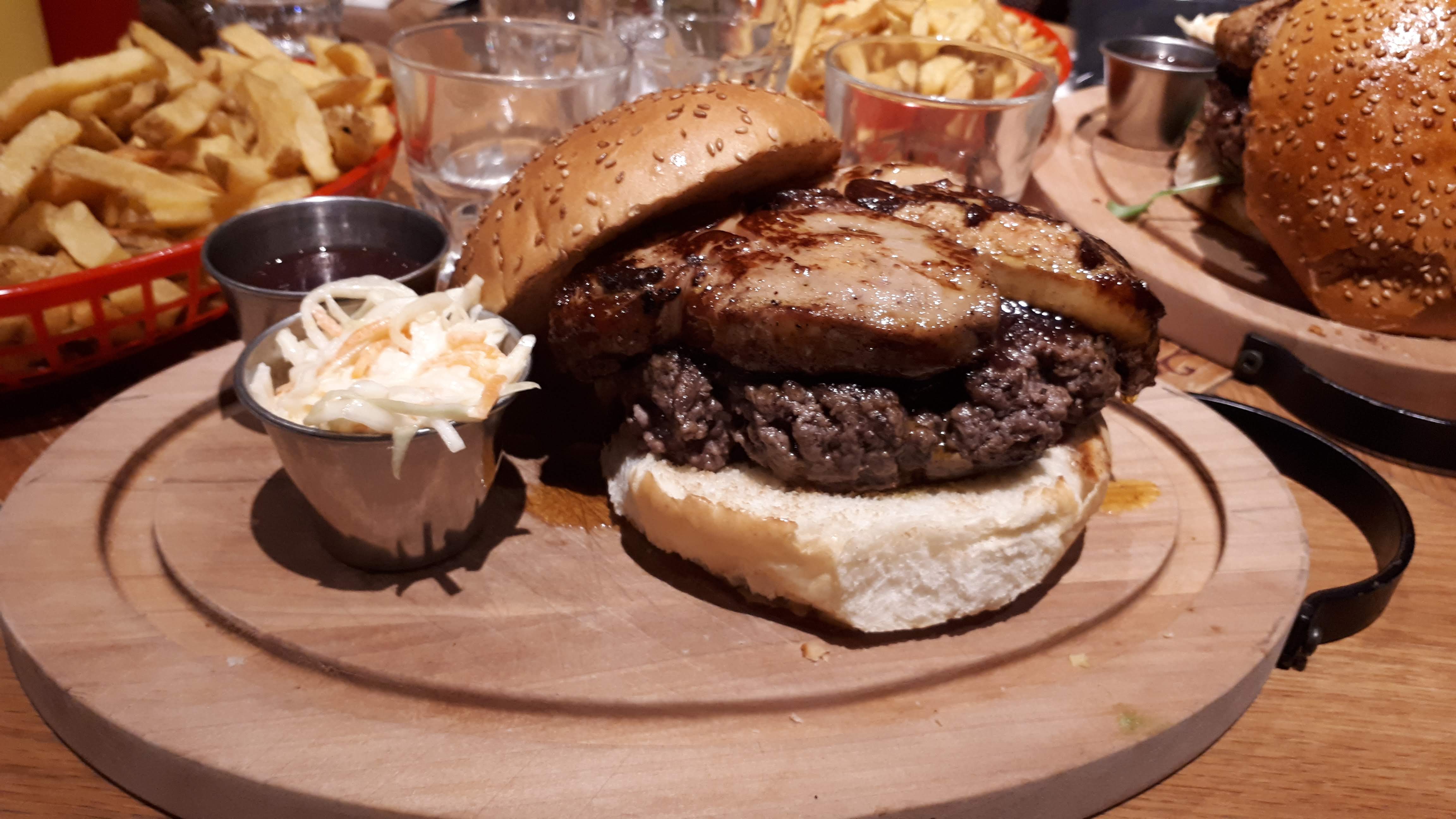 Super restaurant. Nous avons souvent commandé en ligne mais c’est la première fois que nous nous sommes rendus sur place. L’accueil fut chaleureux et l’esprit d’équipe ressort dans la manière de servir les clients. Nous avons beaucoup apprécié l’humour des serveurs et leur complicité entre eux, c’est très rare de voir des serveurs avoir cette intelligence sociale et professionnelle. Pour ce qui est de la salle, très à l’image des fast food américains. La nourriture excellente, généreuse et surtout originale en ce qui concerne le hamburger au foie gras. Le petit plus, c’est le chou rouge avec sa petite sauce vinaigrette, un vrai délice. Attention à ne pas venir rempli, les portions sont tellement généreuses qu’on a vite fait de ne pas finir son assiette, alors autant dire que pour le dessert, il n’y a plus de place.