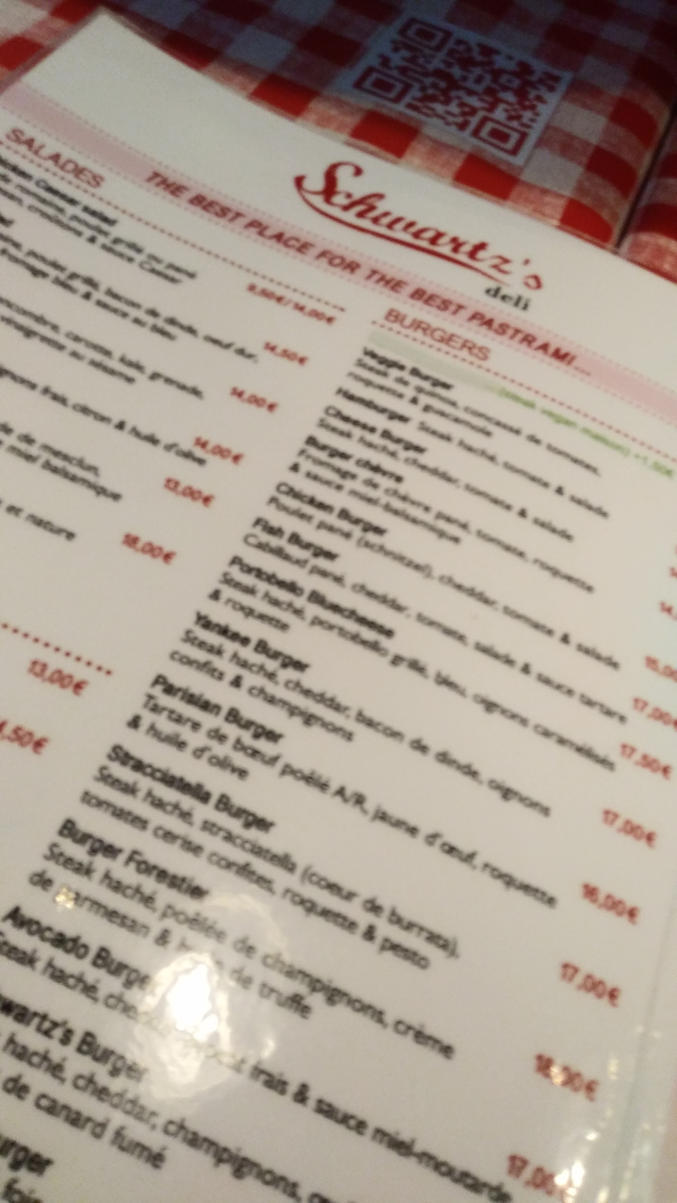 Je recommande fortement Schwartz's. J'ai commandé un burger avec un œuf et du magret de canard pour 18€. Le steak haché a vraiment du goût, la portion est très généreuse (je suis reparti avec un doggy bag pour mes frites). L'ambiance est assez sympathique, et le service est au top. J'y retournerai !