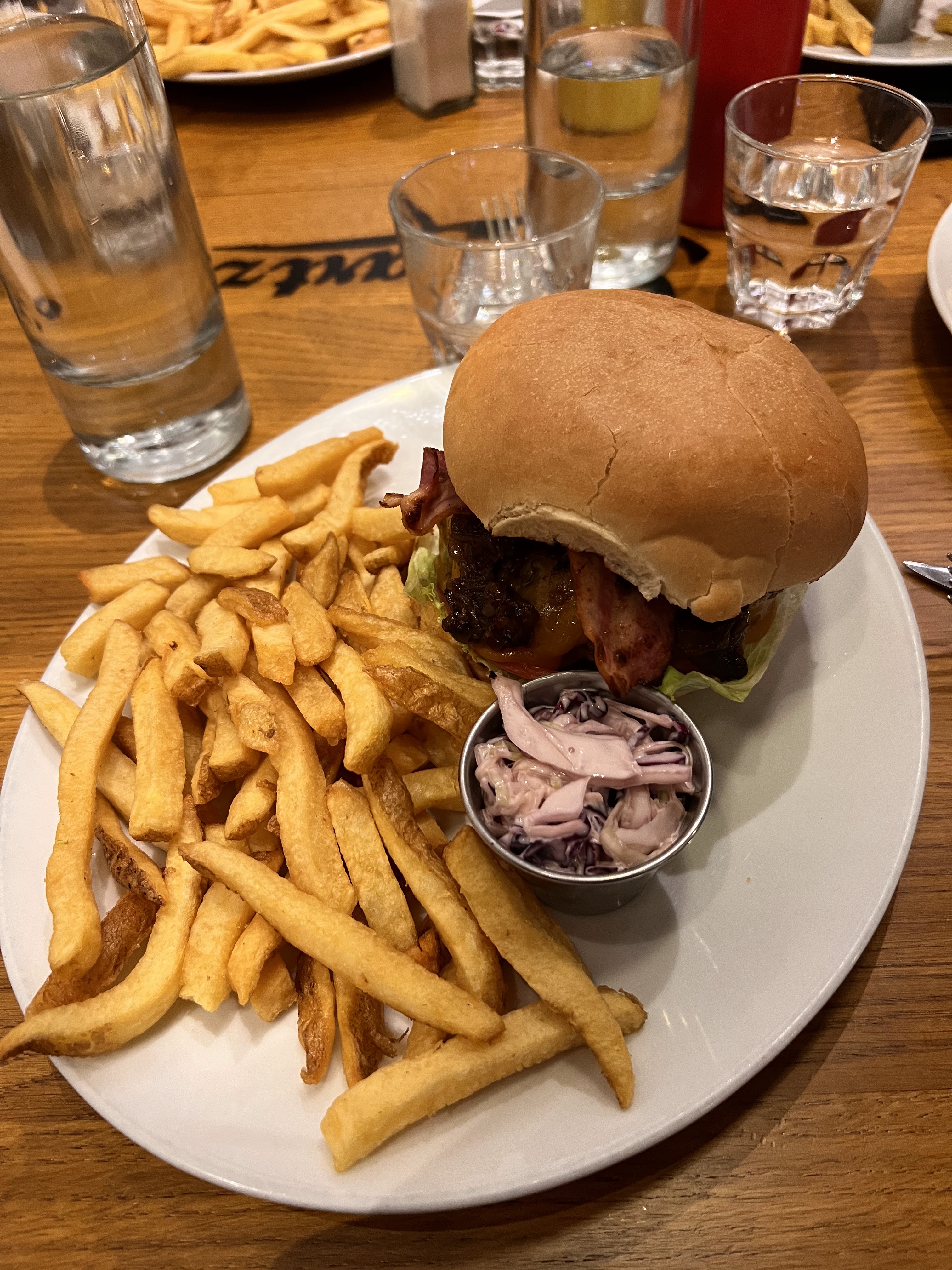 Les burgers et les frites sont excellents !! Ohhhhh les frites quel délice 🔥🔥. Sinon le cadre et les serveuses sont très agréables et sympathique. Bon rapport qualité/prix pour le coup 👍🏽