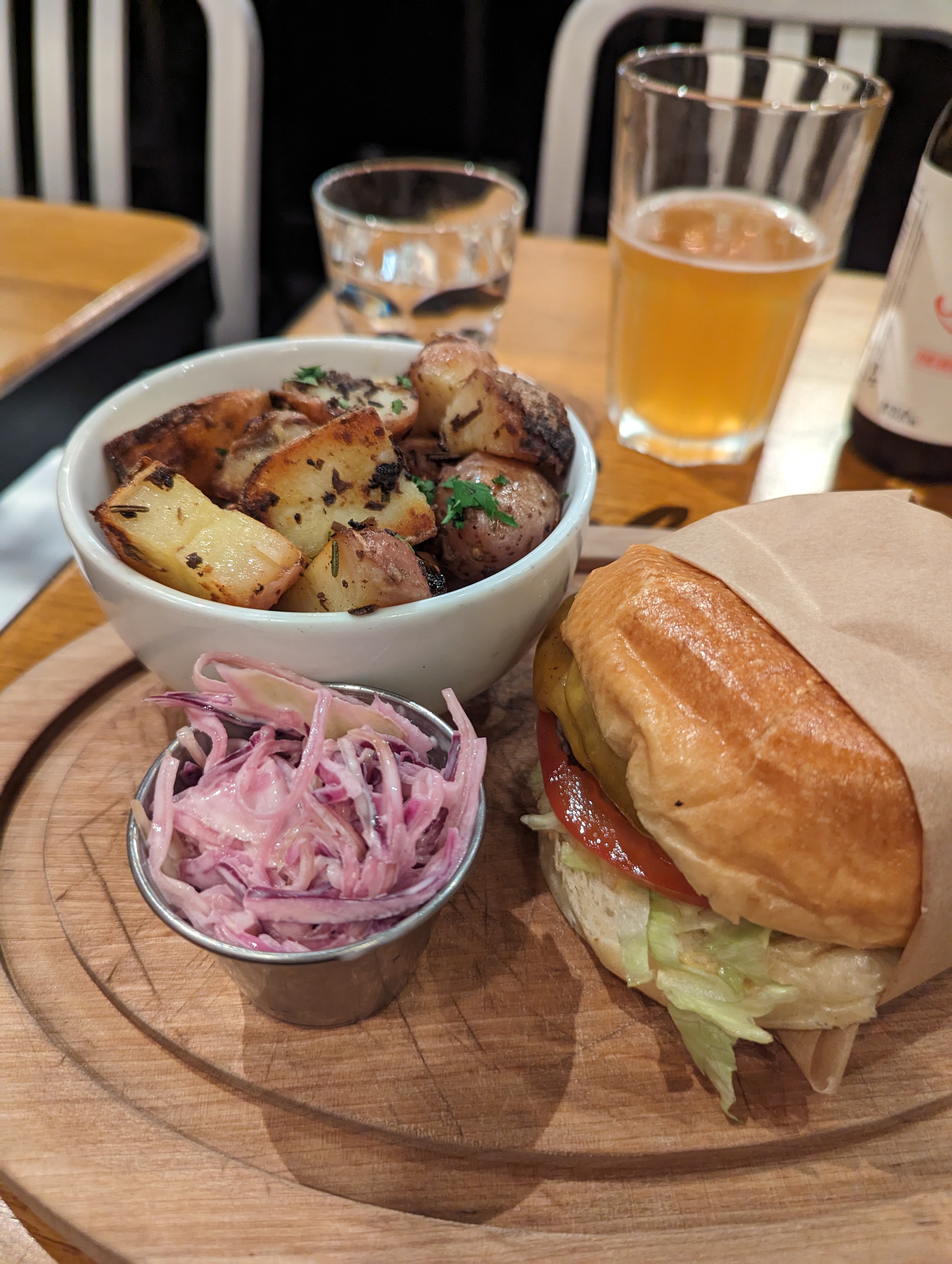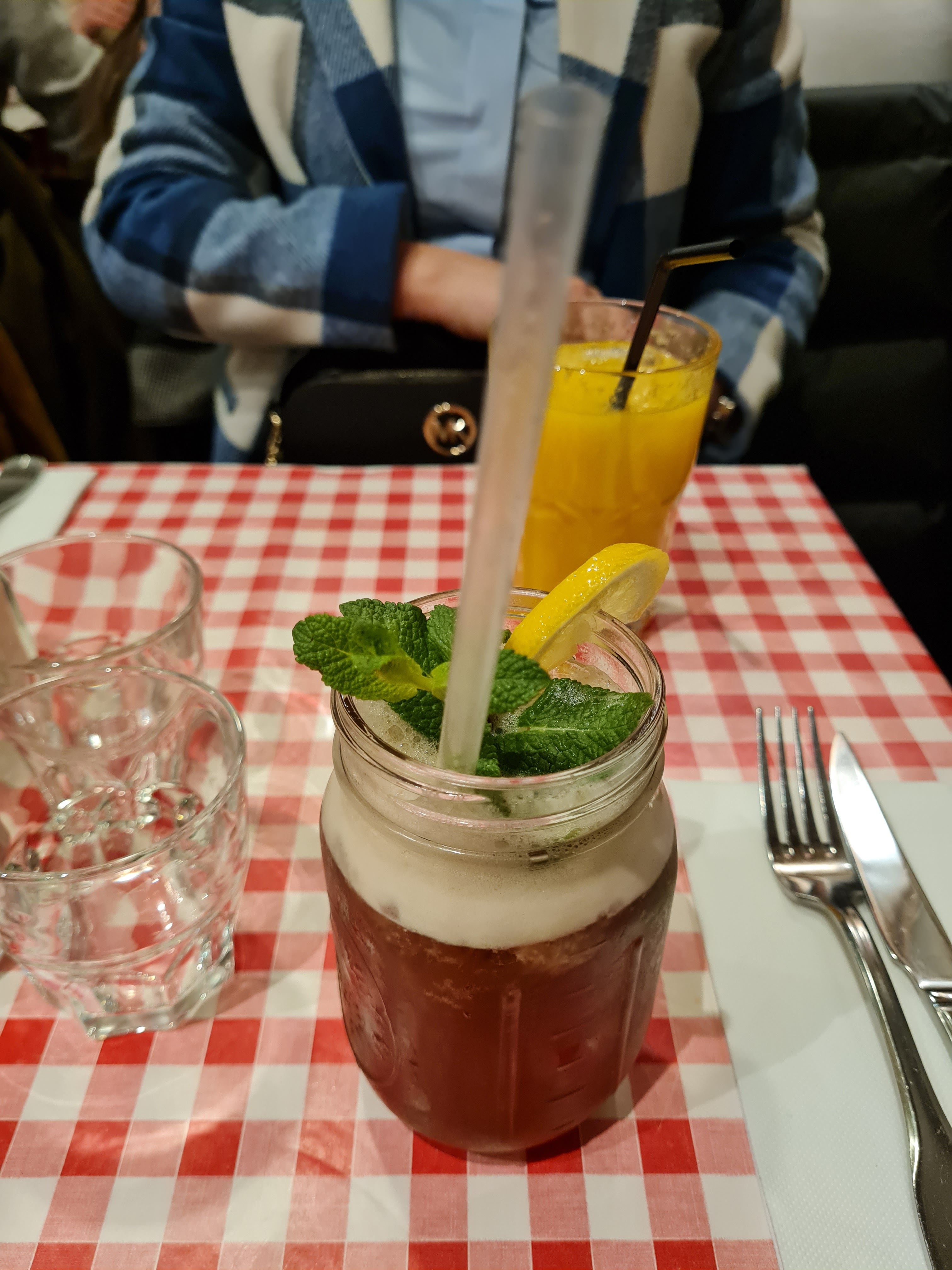 Très chouette restaurant à la mode US. Déco travaillée. Service irréprochable accueil chaleureux : rapide et service aux petits soins avec anticipation de nos besoins (ex. carafes d'eau apportées sur la table sans qu'il soit besoin de demander et idem pour son renouvellement). Nourriture excellente et en quantité astronomique pour un prix plus que raisonnable. Bière IPA excellente ! Nous y retournerons.