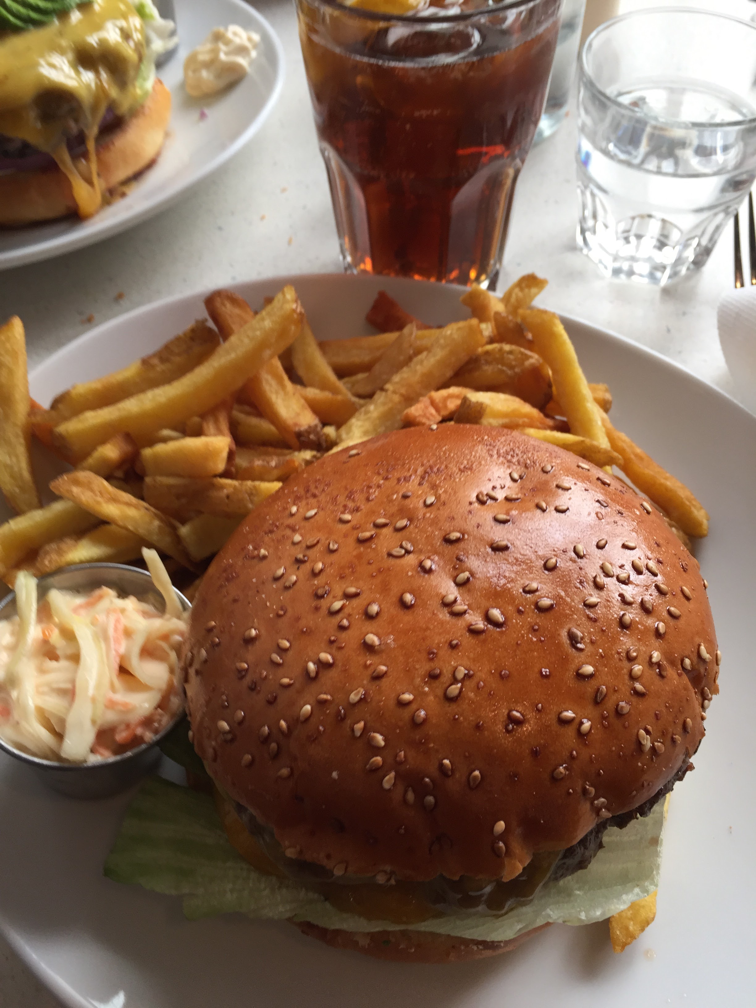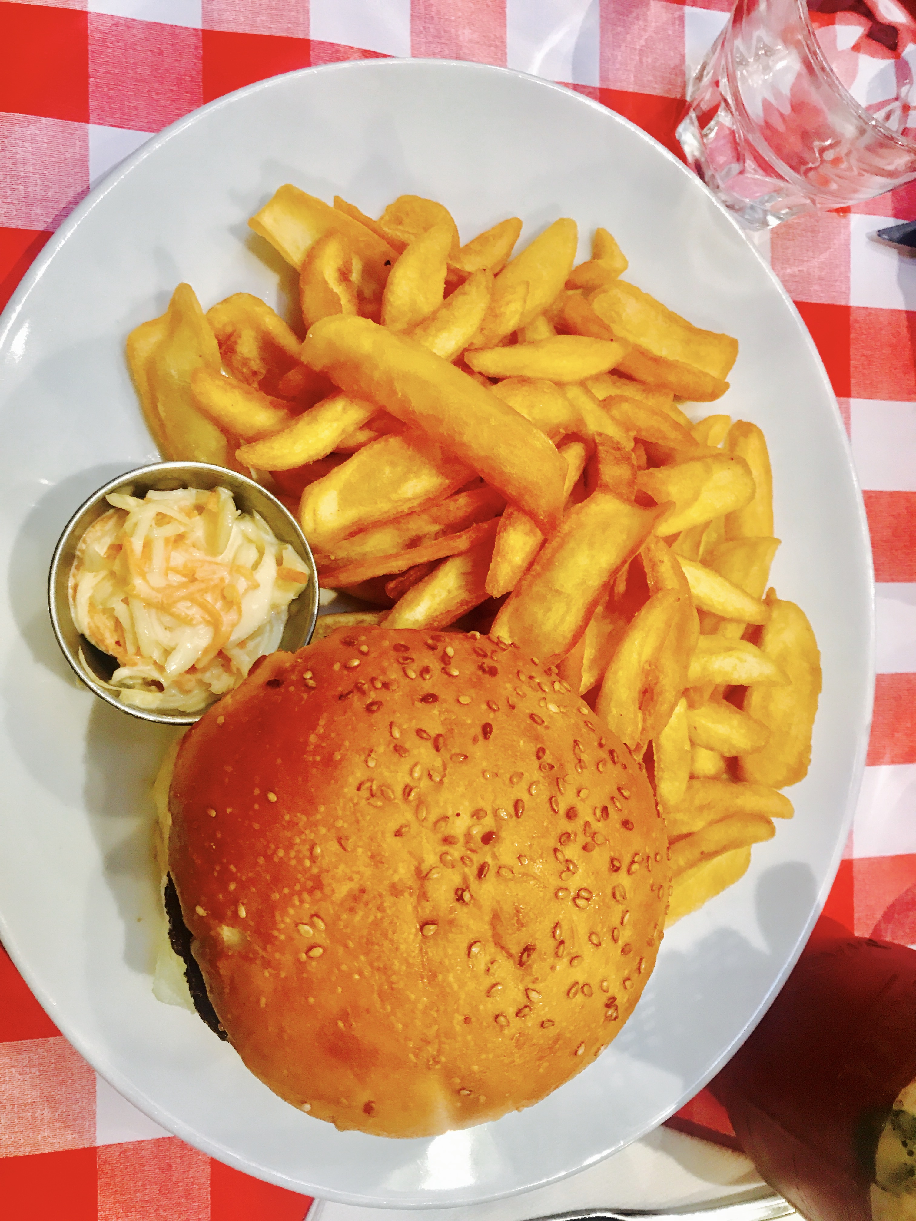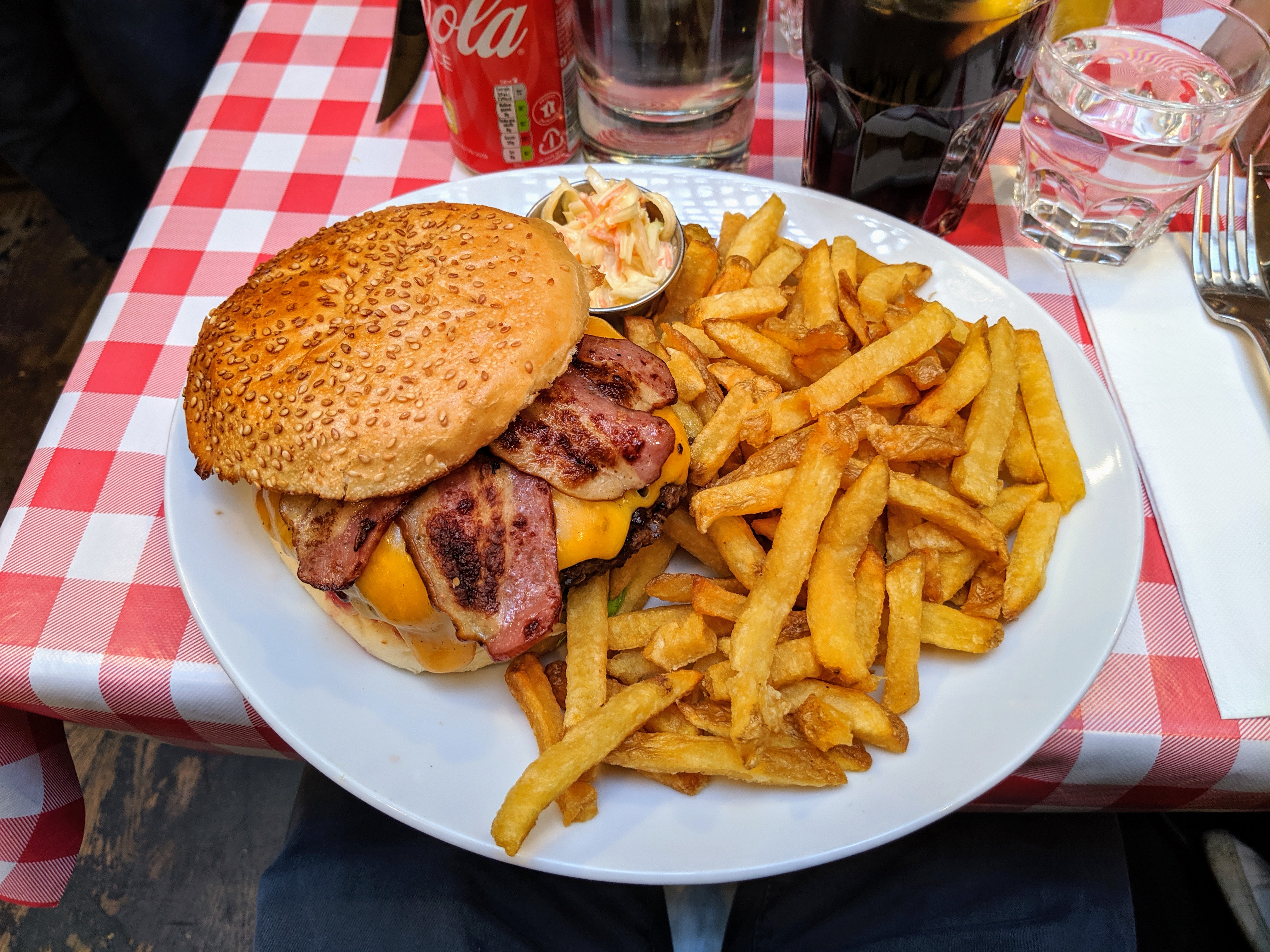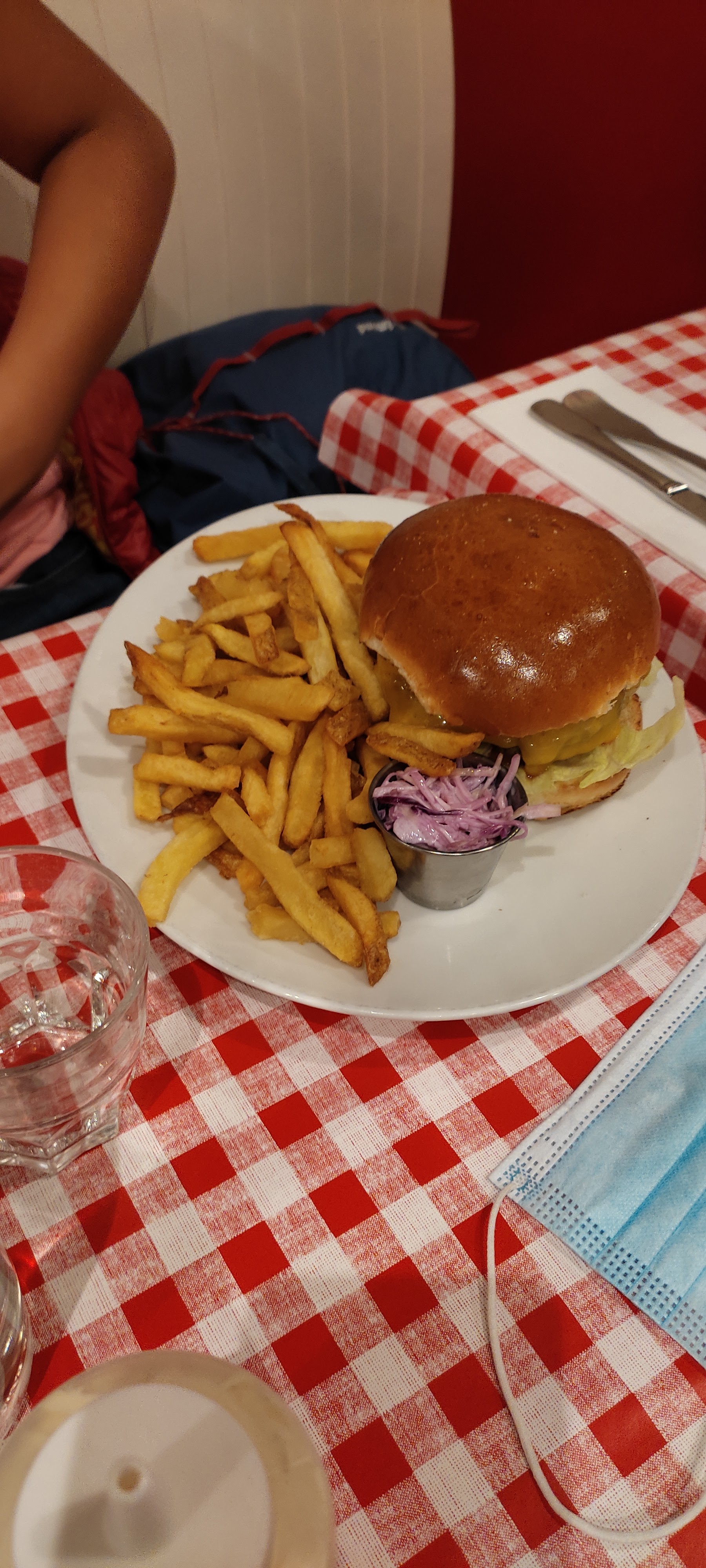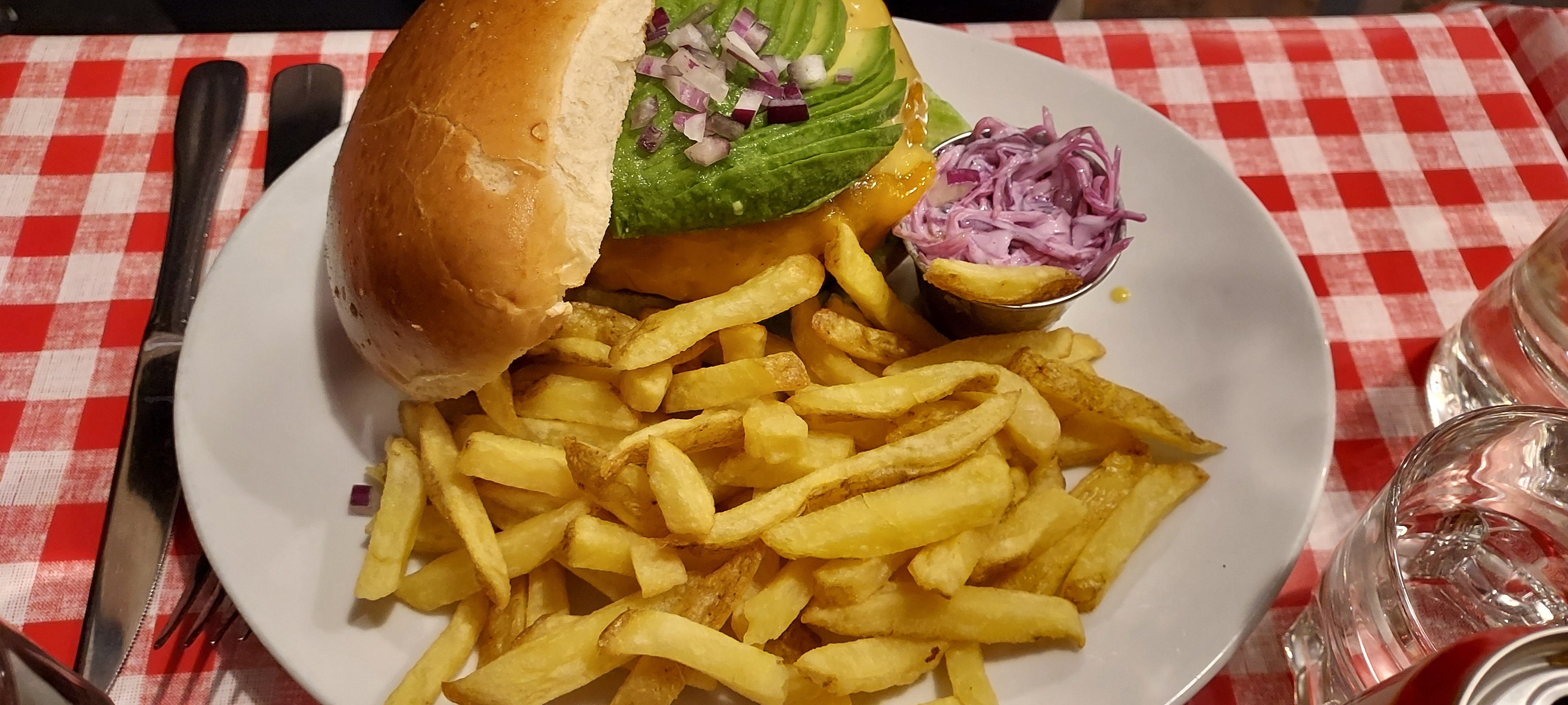 Très bon accueil, personnel sympa et très bonne nourriture. Par contre les tables sont très serrées. La personne qui nous place doit déplacer la table pour nous faire asseoir ou se lever de la banquette. Les burgers sont très bons et très beaux et les frites aussi bonnes qu'en Belgique et bien salées comme j'aime. Il n'y avait même pas besoin de les manger avec de la sauce. J'ai pris un burger avec de l'avocat, j'avais jamais vu ça ailleurs, ça avait beaucoup de gout, pas assez de goût d'avocat pour moi mais j'ai aimé quand même. On a malheureusement pas eu de place pour un dessert après le repas.