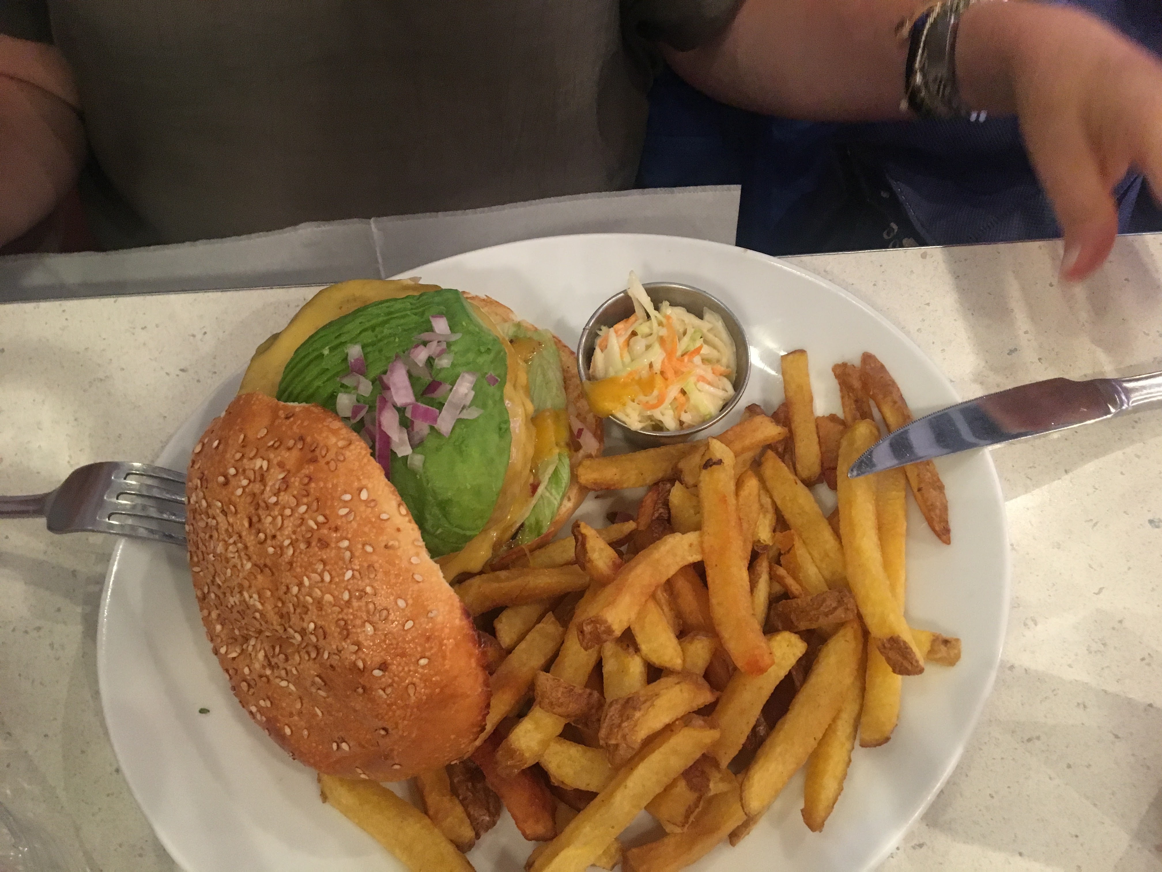 Bon accueil, les siège de devant sont un peu serré quand on est à 4 mais moment convivial. L avocado burger était vraiment bon! Je le conseil!!!!