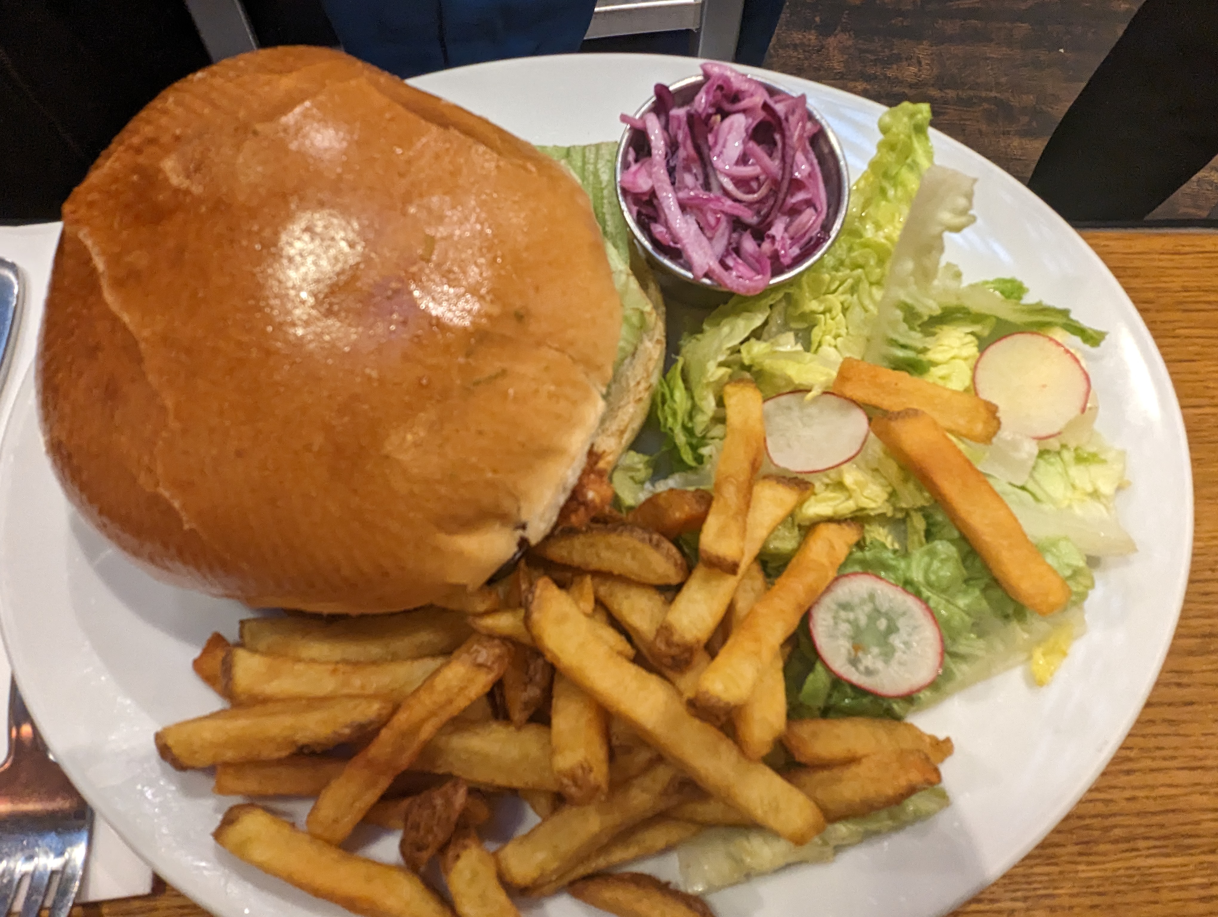 J’ai bien mangé, copieux merci aux serveurs qui se sont bien occupé de moi. Le carrot cake est l’un des meilleurs mangé car il était moelleux. Prochaine fois je vais essayer les frites fraîches maison même si j’étais un peu déçu car sombre et courtes dans les autres assiettes.