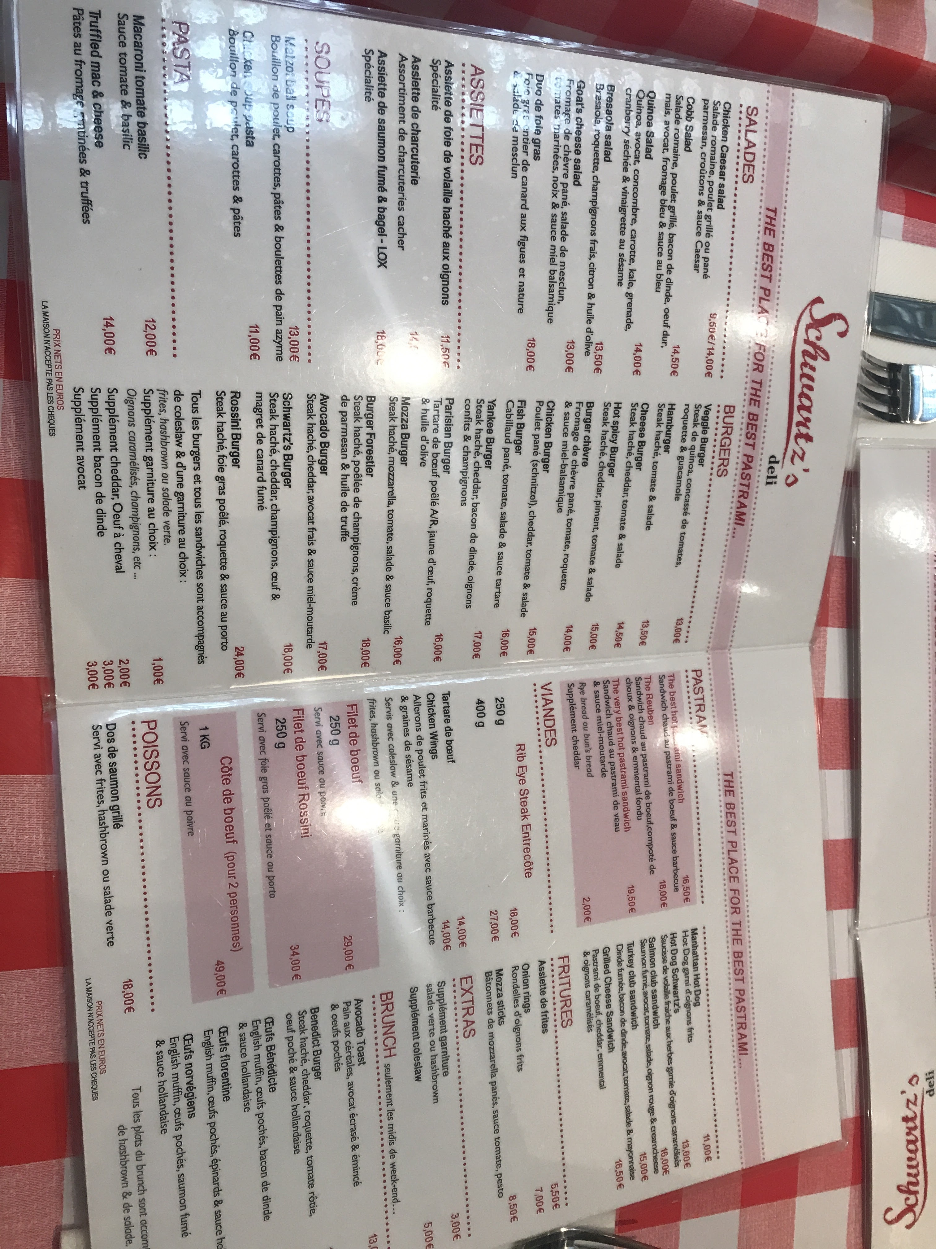 Quand on est amateur de sandwich, on aime passer chez Schwartz gouter leur carte qui mêle habilement pastramis et charcuteries kasher, burgers et viandes à partager, dans un décor digne d'un petit deli new-yorkais. Il y a quelque chose de régressif et particulièrement appétissant que de voir les sandwiches aux couches multiples de fines tranches de viandes arriver dans l'assiette, une générosité que l'on aime accompagner de frites histoire de parfaire le tableau. Ambiance de cantine, au service avenant, simple et d'une efficacité réjouissante. Bonne table, à réserver aux gros appétits, on ne lésine pas sur les quantités! Très sympathique.