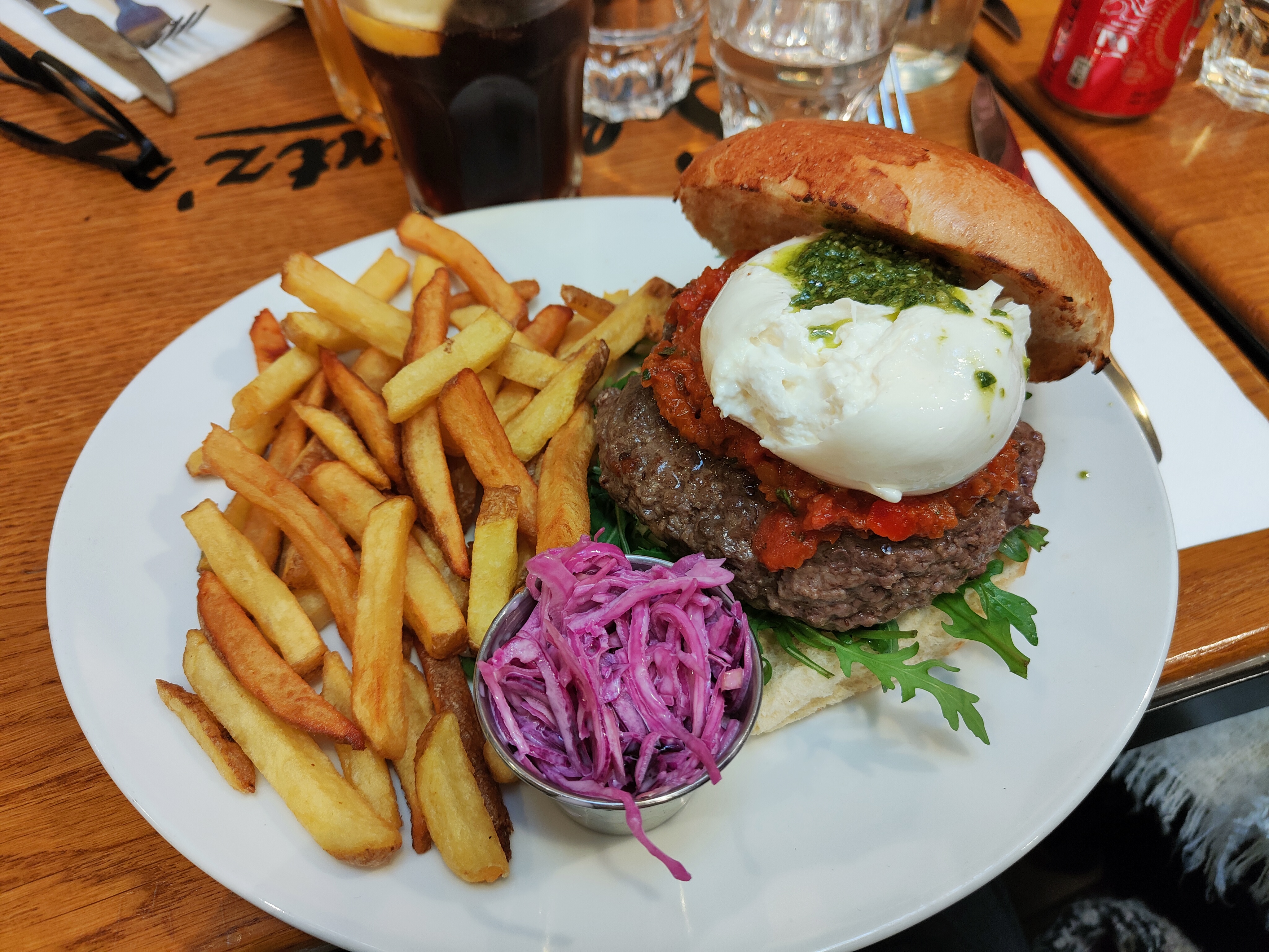 C’est le meilleur burger que vous puissiez goûter. On a testé plusieurs adresses, mais ce n’est pas du tout pareil, on revient toujours vers Schwartz. Quantité très généreuse et on peut choisir salades et frites au lieu de choisir un seul accompagnement (salades ou frites). Petite remarque, la quantité des frites et salades est moins généreuse que celle chez Schwartz du 16ème arrondissement.