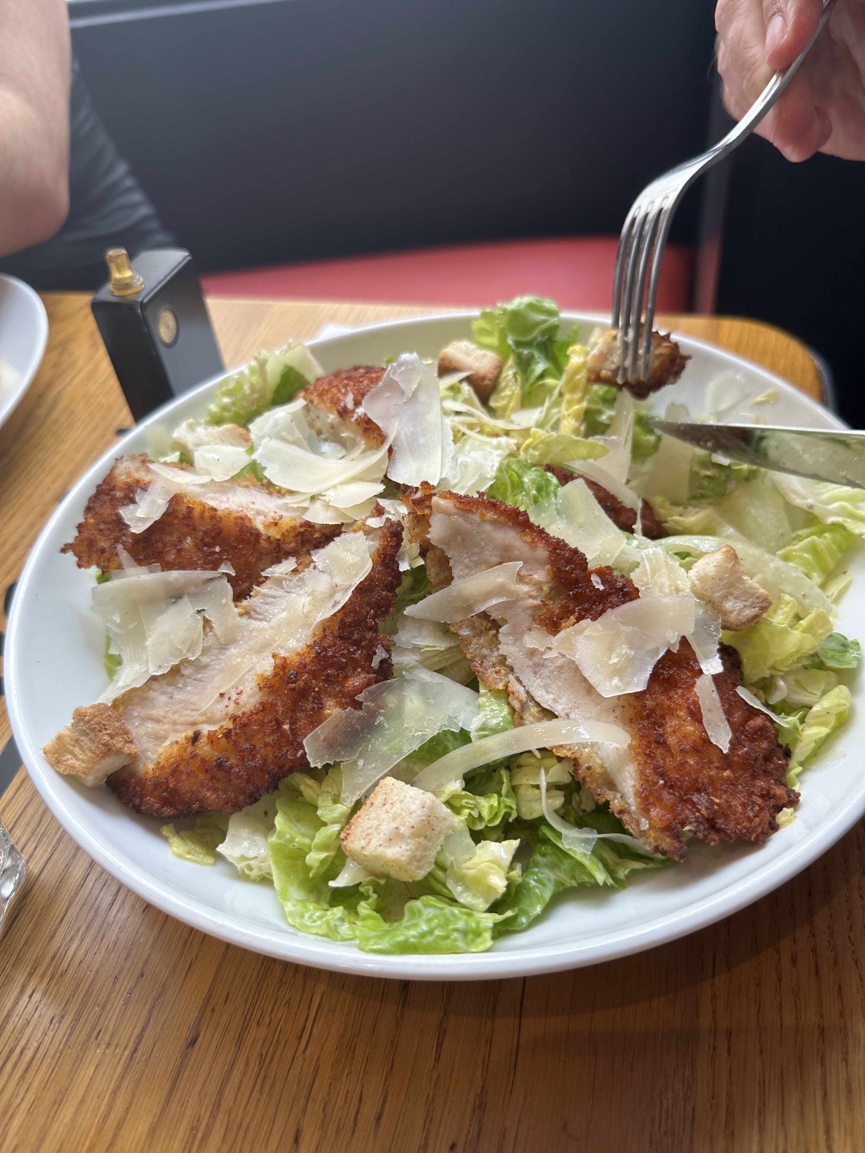 Très agréable j'ai pris une petite salade césar et je peux vous dire que ce ne sont pas de petites tranches de poulet ! Elles sont bien cuite et bien épaisse comme il faut ! Serveurs très agréable également !